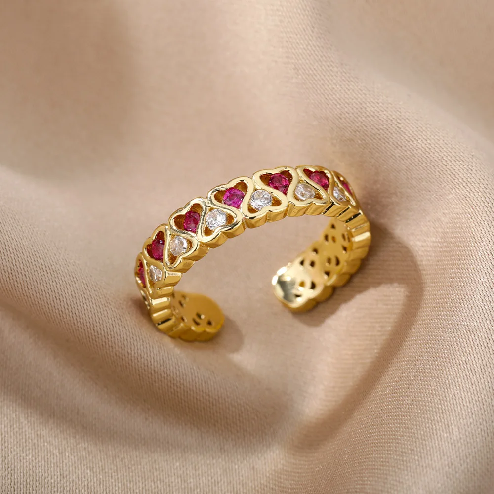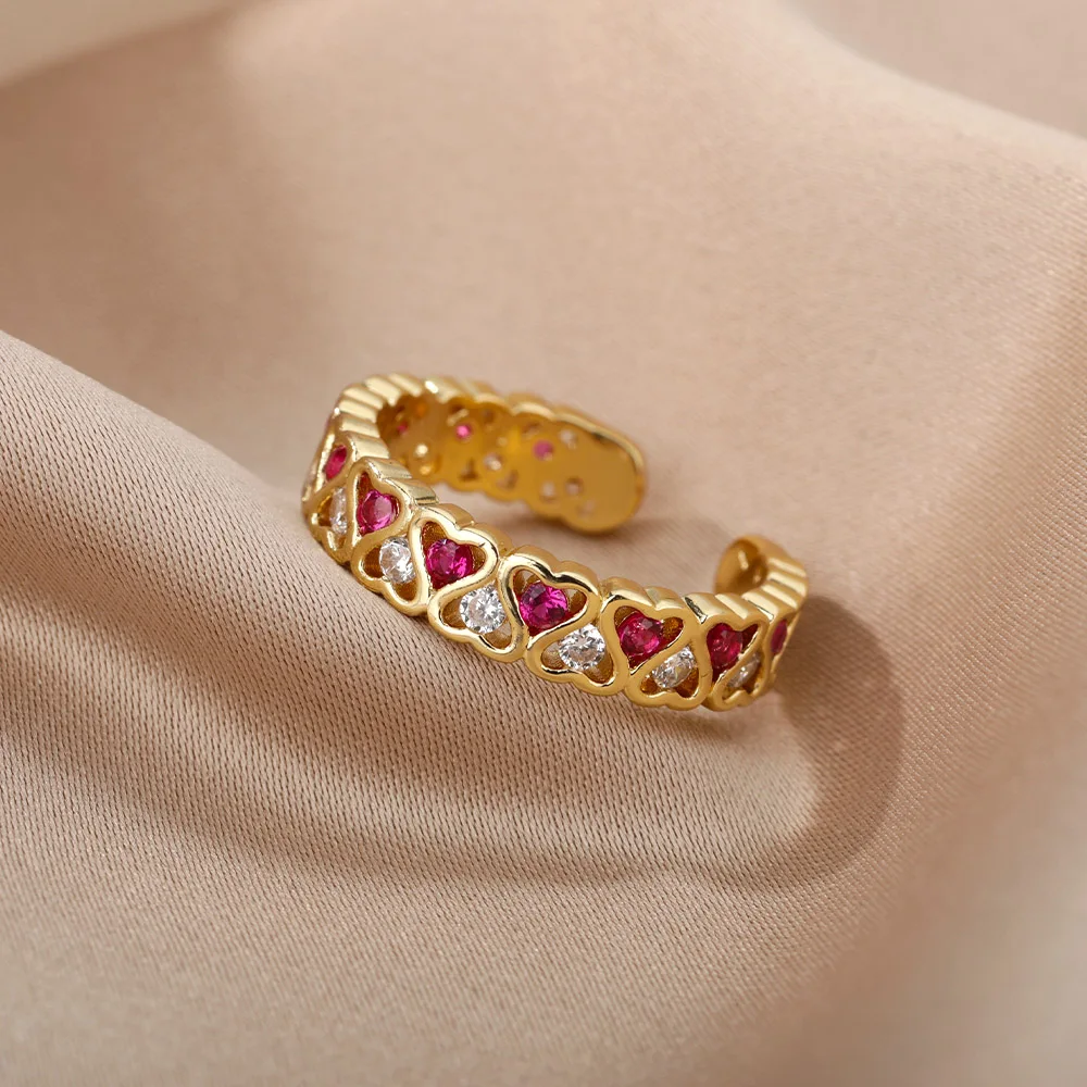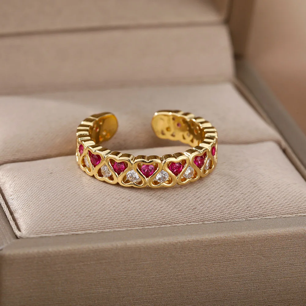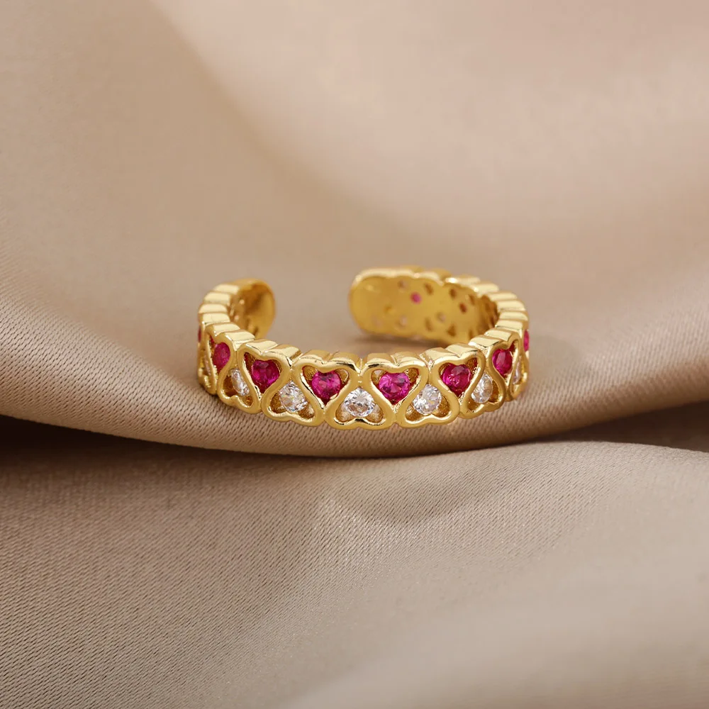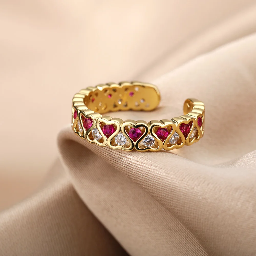 Red Heart Shape Rings Open Women's Ring Cute Fashion Adjustable Love Rings for Women Girl Engagement Wedding Jewelry Gift