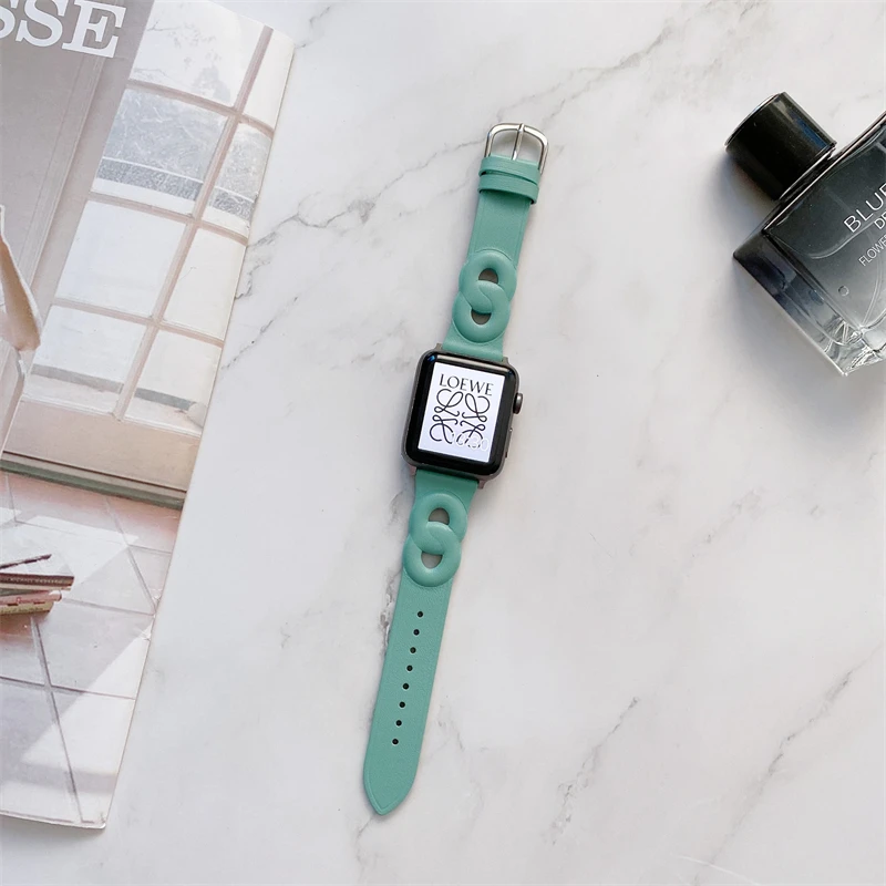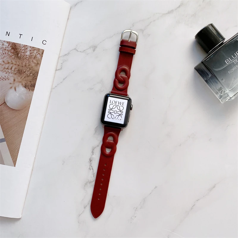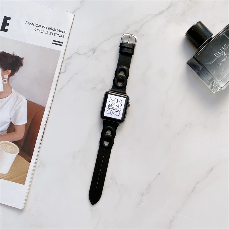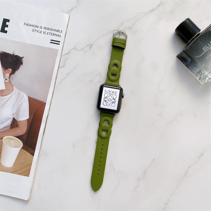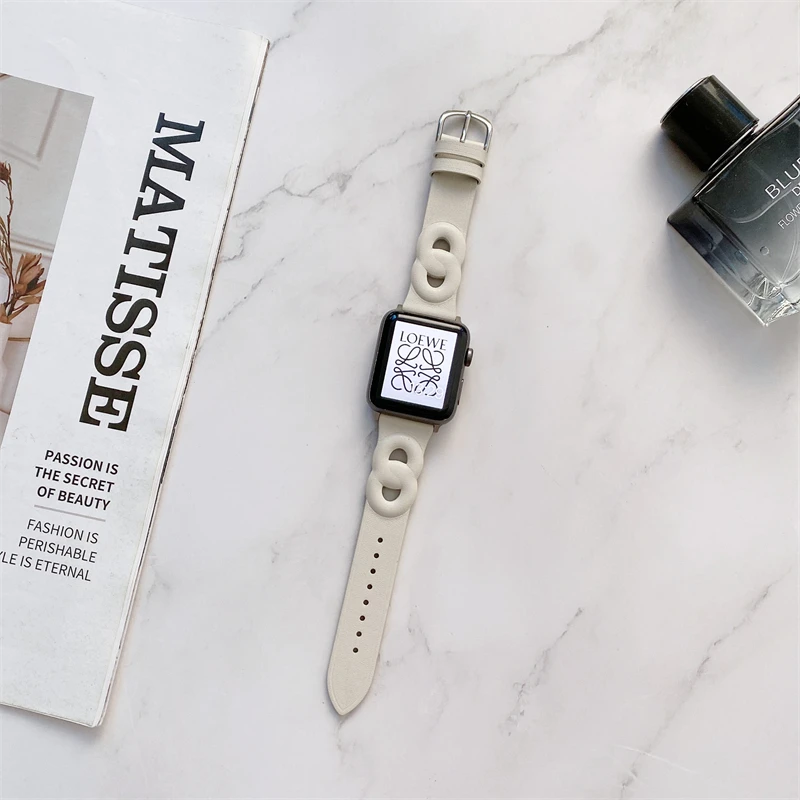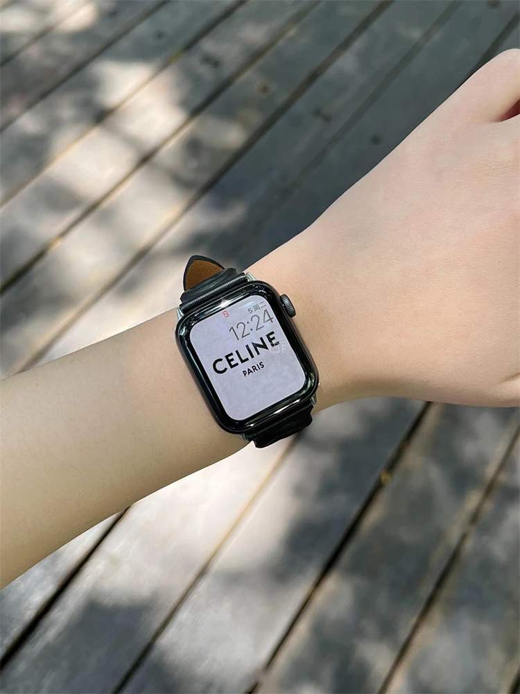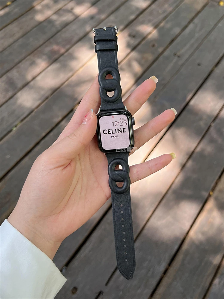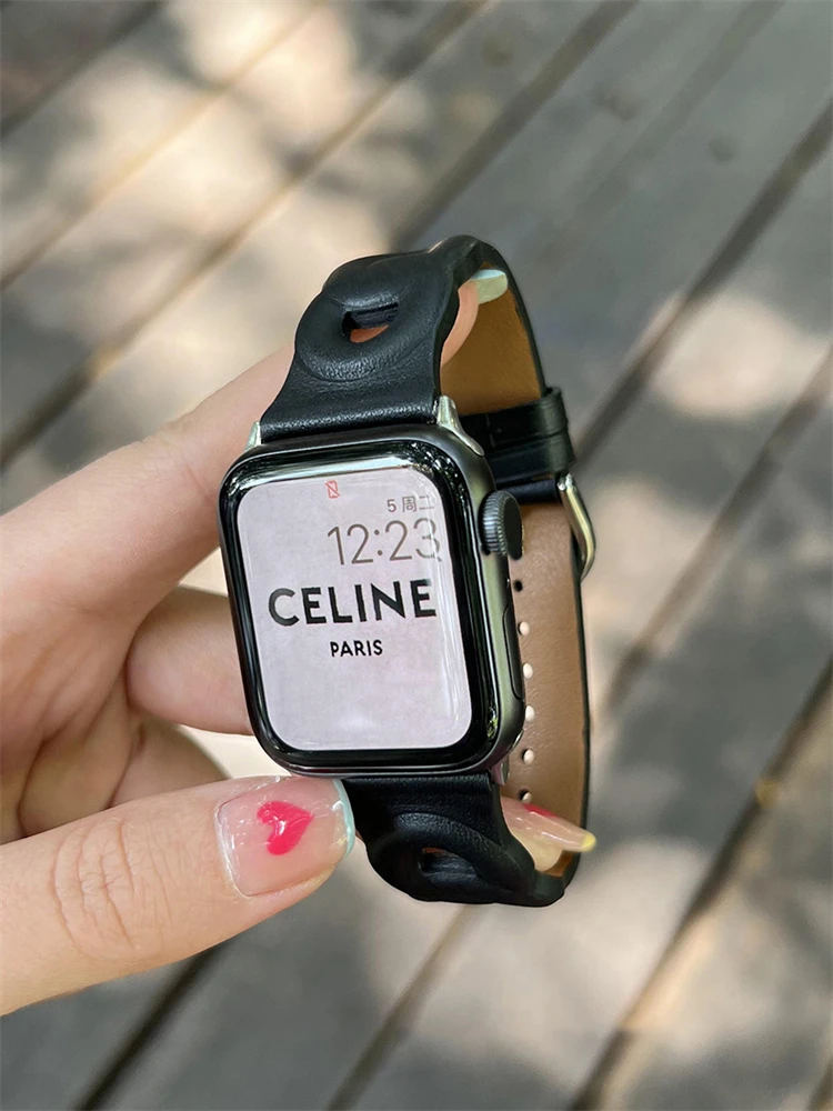 Circle Leather Thin Strap For Apple Watch Band Series 7 6 5 4 3 SE 2 1 Soft Wristband For iWatch 41 45 38 40 42 44 MM