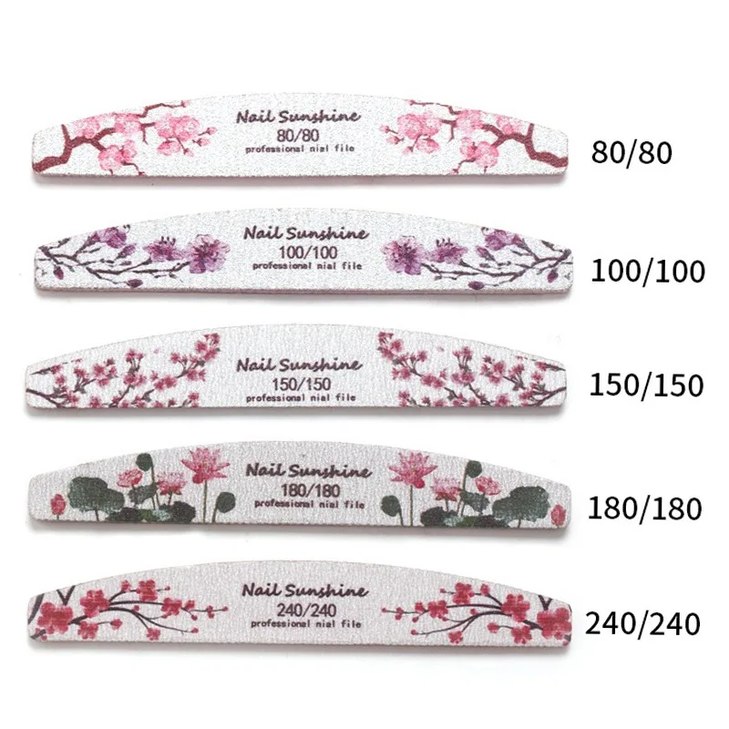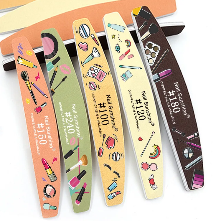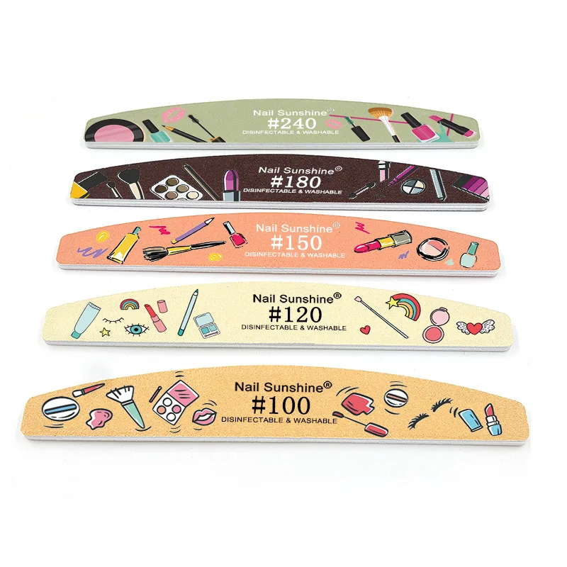 Printed Half Moon Nail file 100/180 Sandpaper Nail File Sanding Gel Polishing files Professional nails manicure file