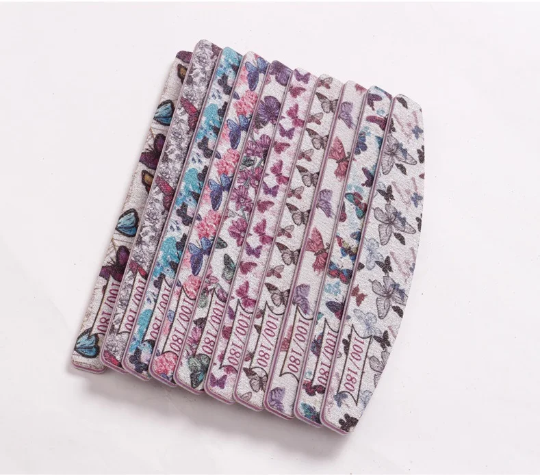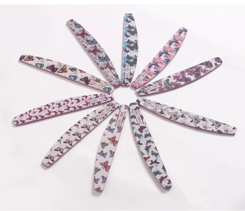 Butterfly Printed Half Moon Nail file 100/180 Sandpaper Nail File Sanding Gel Polishing files Professional nails manicure file