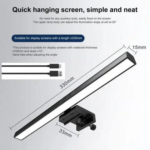 3. Easy to install and use. No screws or tapes are needed to damage the monitor. The clip is suitable for monitors with a thickness of (about 0.4-1.2cm/0.16-0.47inch). The lamp can be used with computer USB ports, mobile power supplies and others with USB sockets. DC 5V electronic equipment.