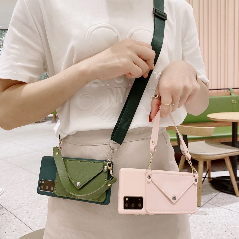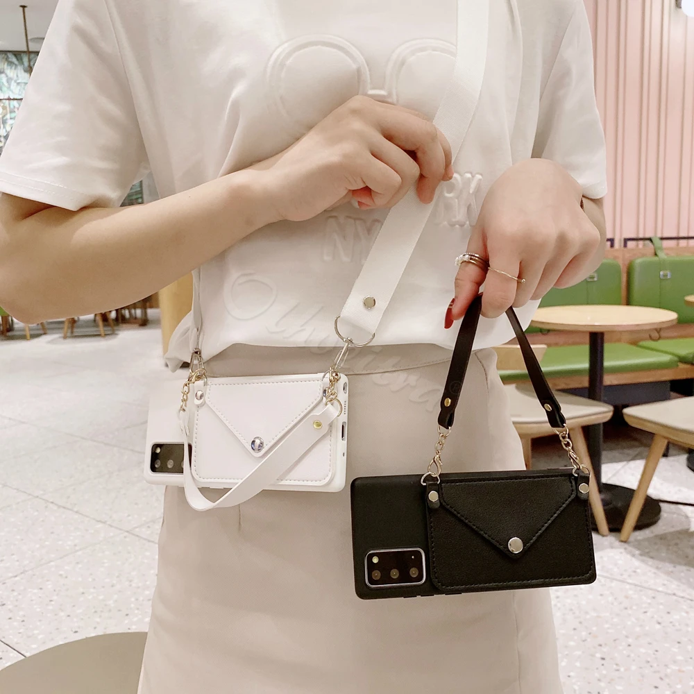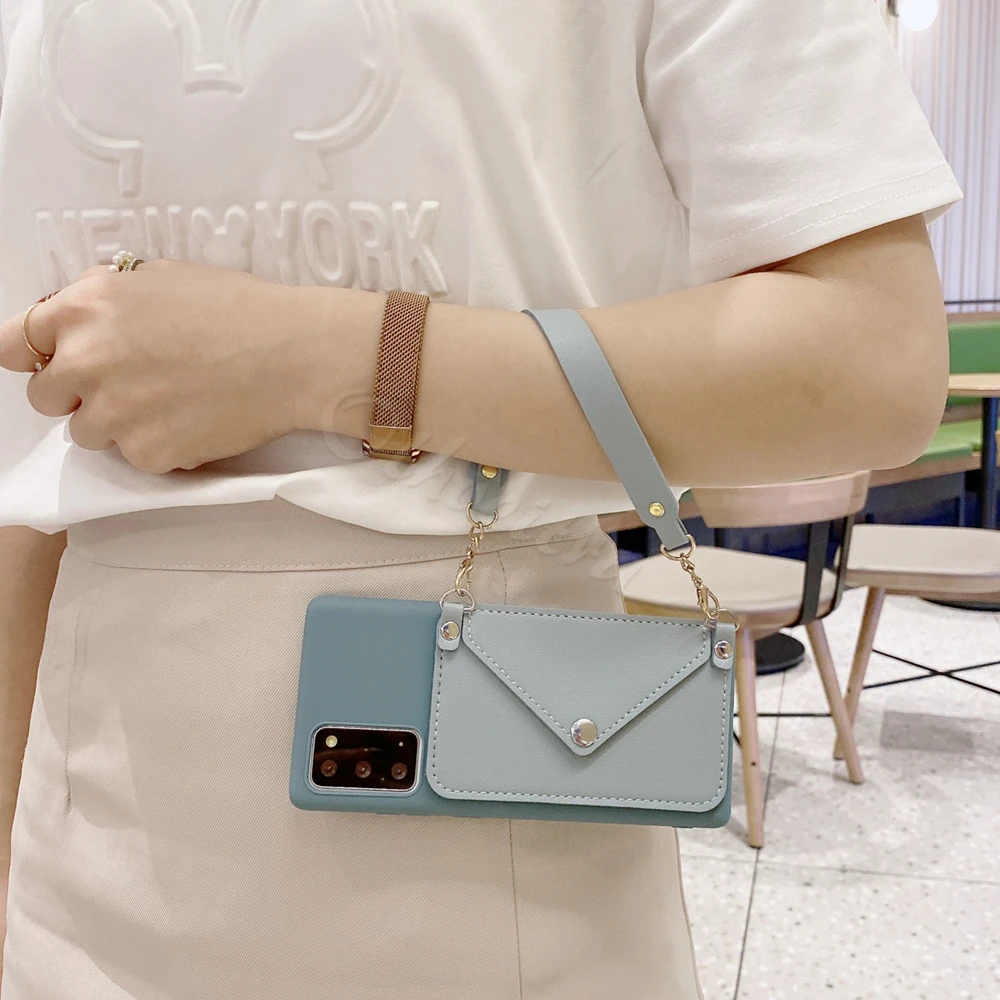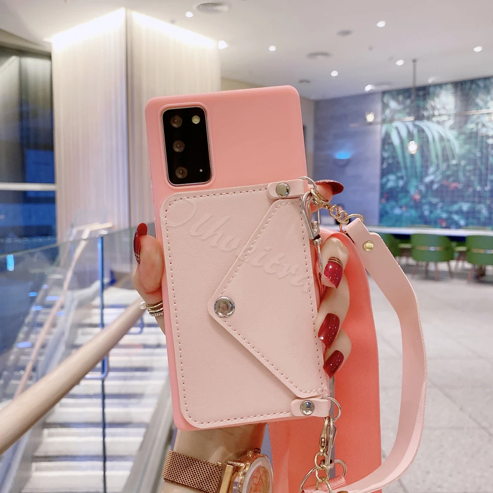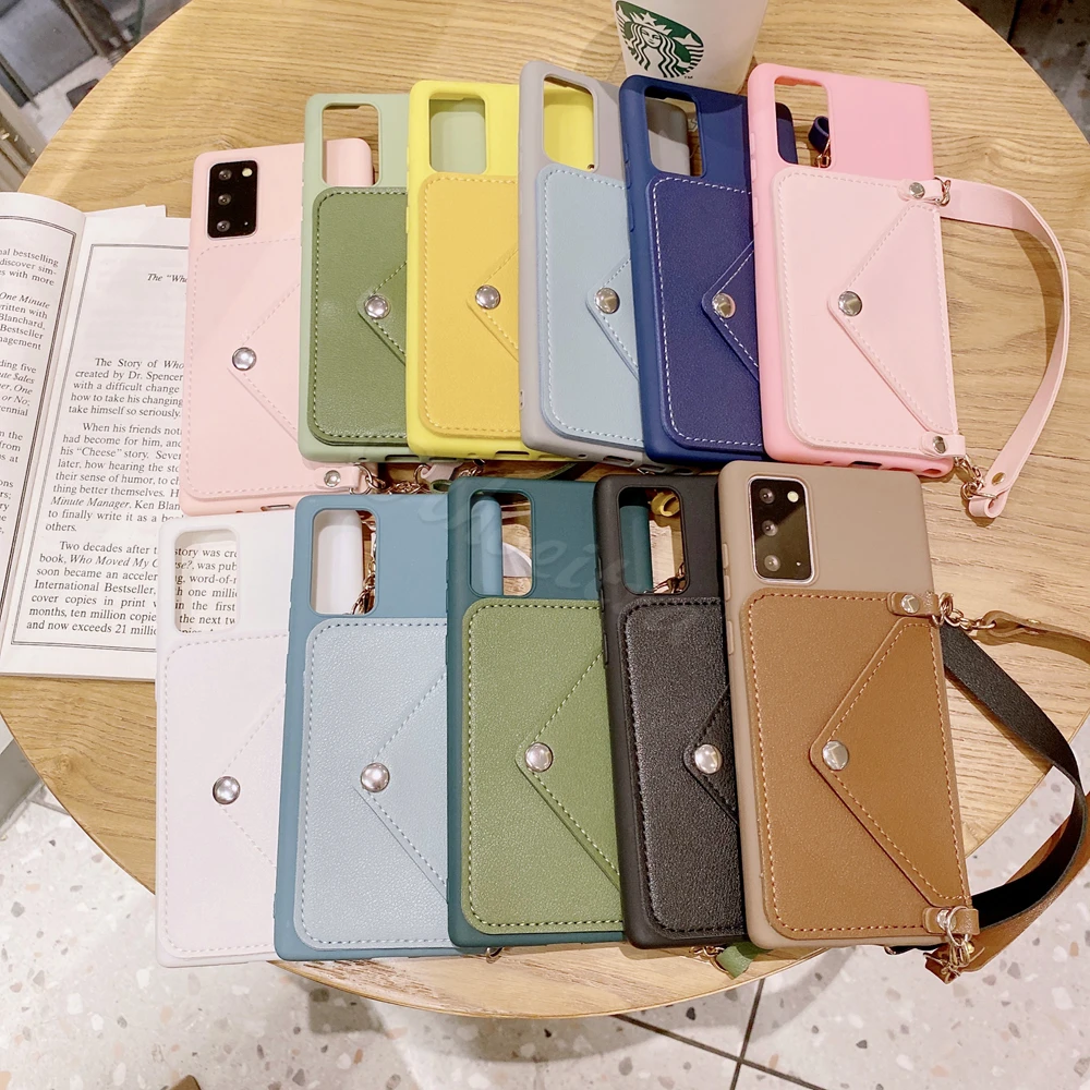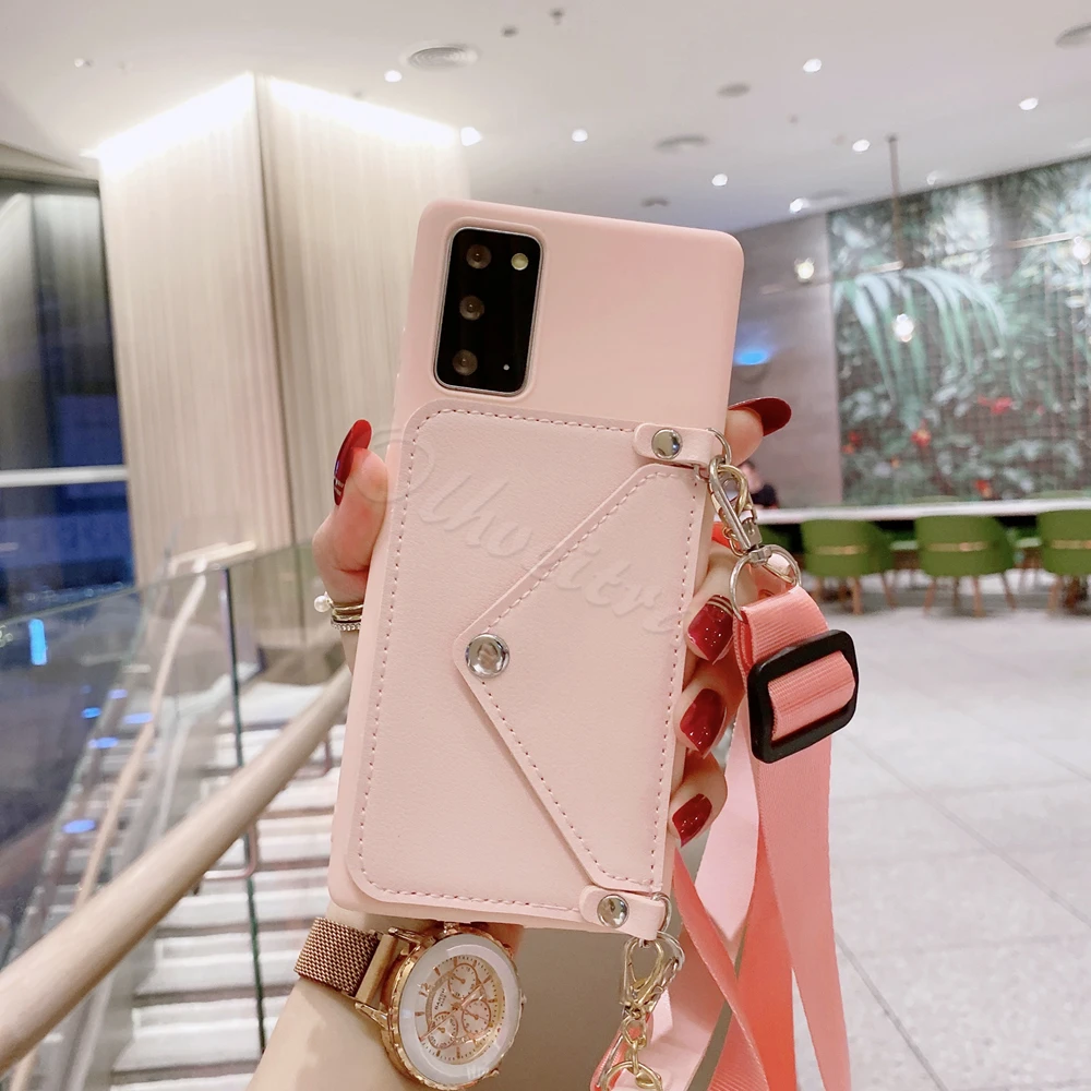 Strap Card Slot Wallet Cover For OnePlus 9 7 Pro 8T 5G 7T 6T One Plus 9 Case Crossbody Lanyard Chain Liquid TPU Fundas
