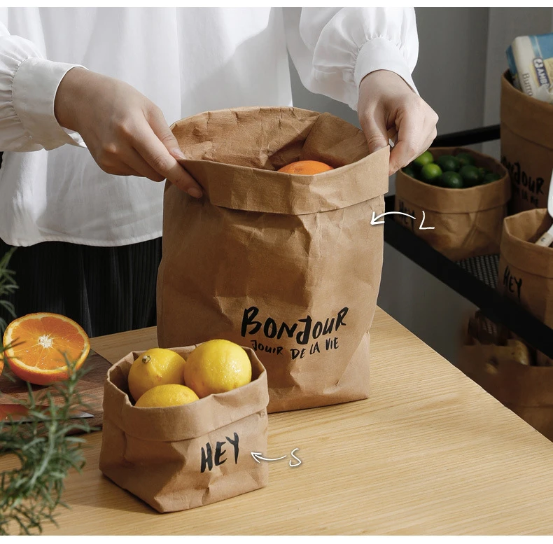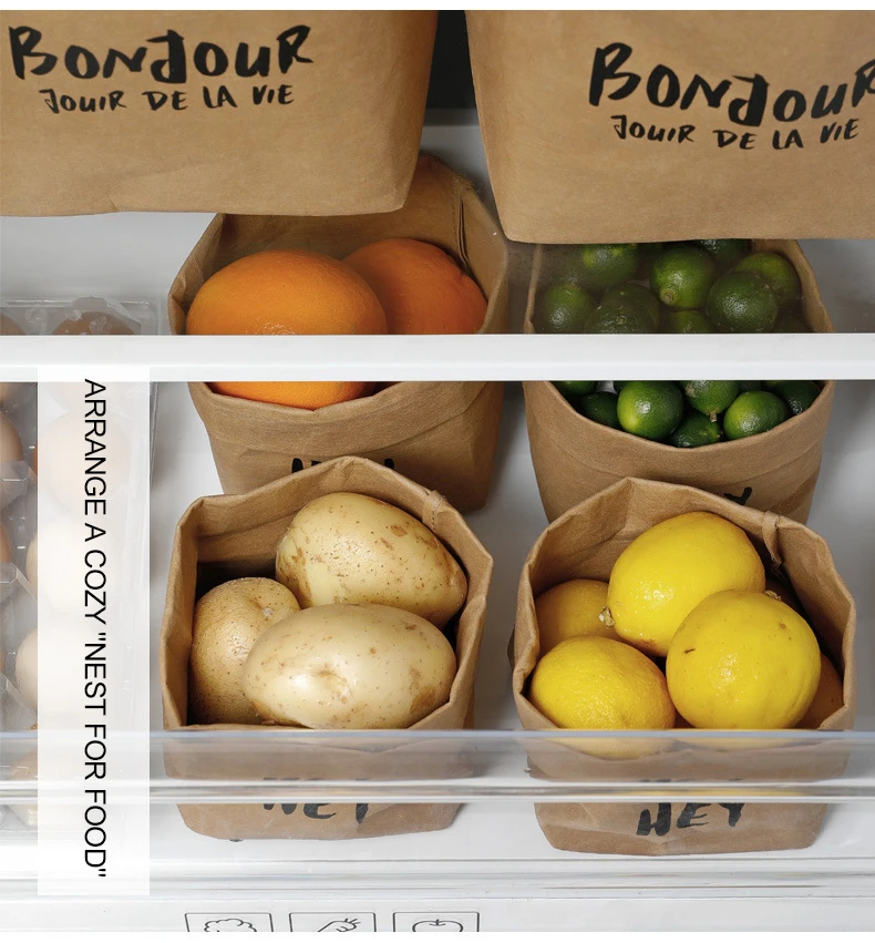 Kraft Paper Bag Vegetable Bags Produce Bag Reusable Vegetable Storage Bag Kitchen Fruit Vegetable Food Storage Bag