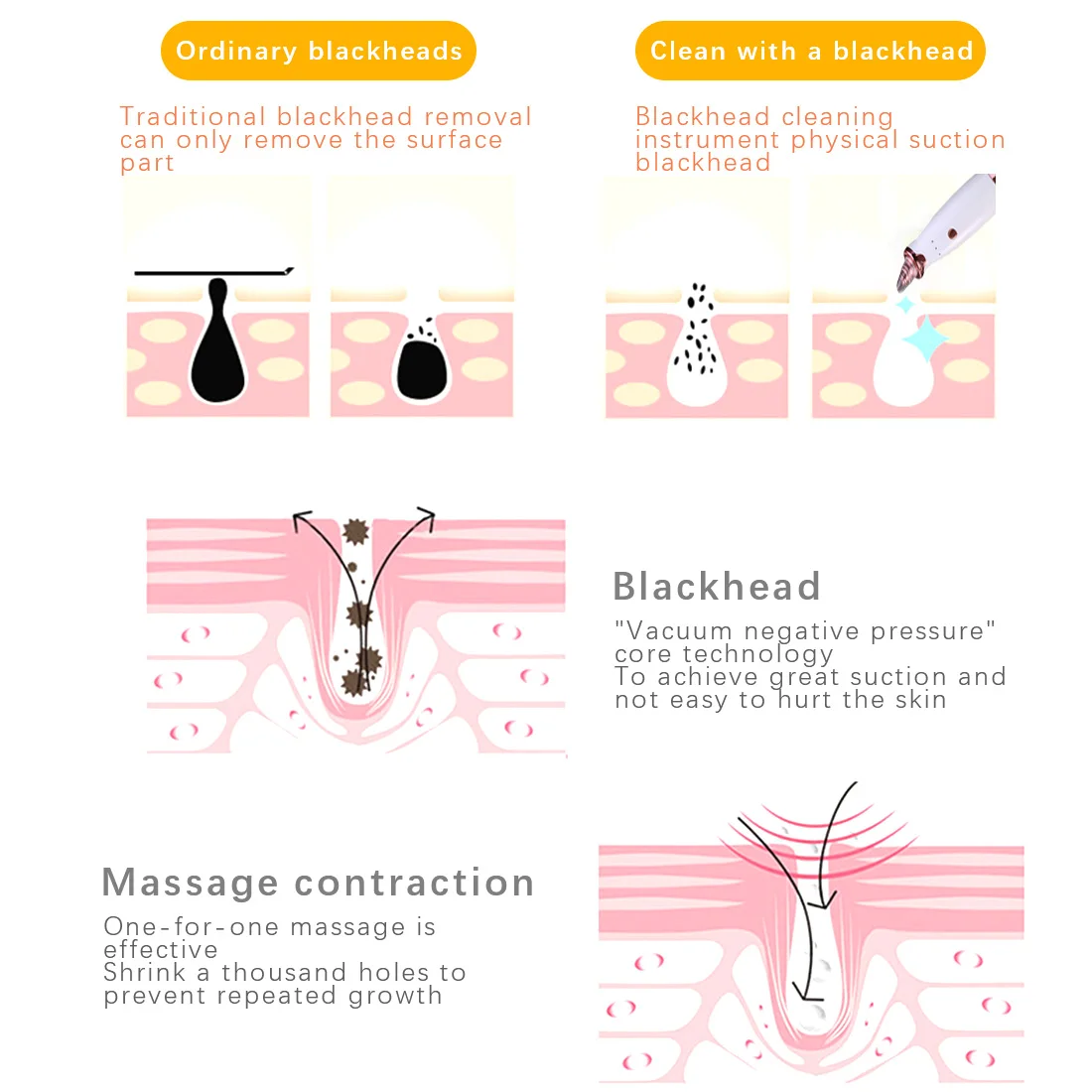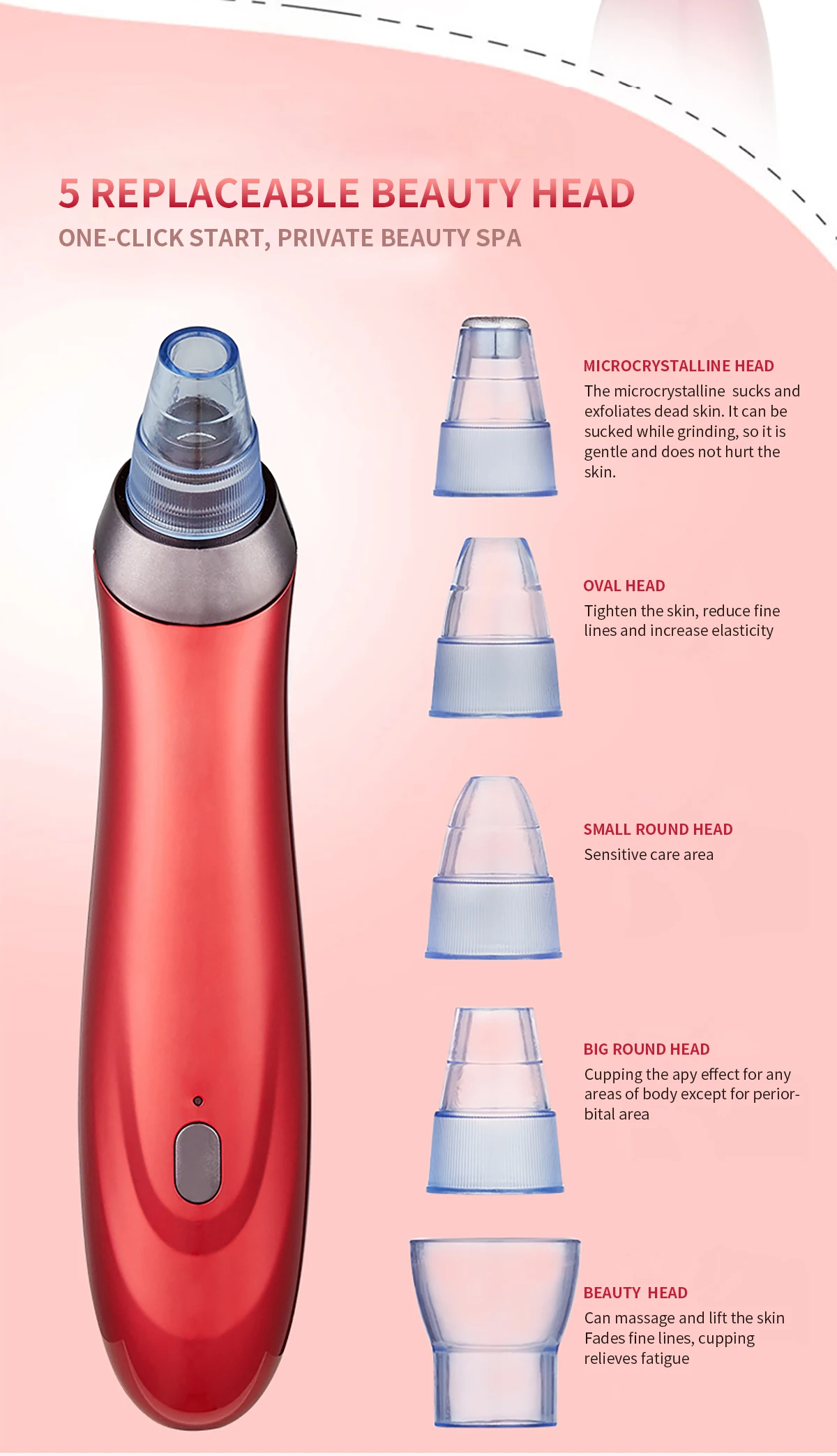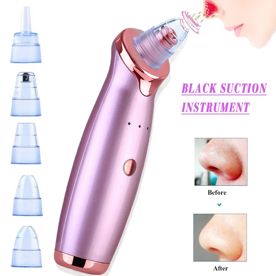 ✍ The small round head is used for sucking black head, especially suitable for fragile skin. The suction power is very weak.