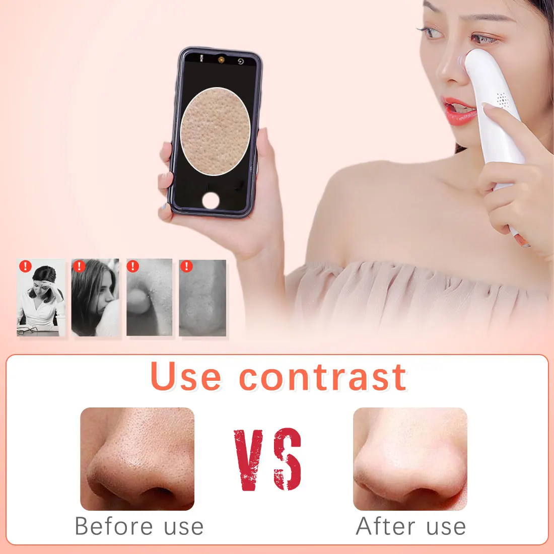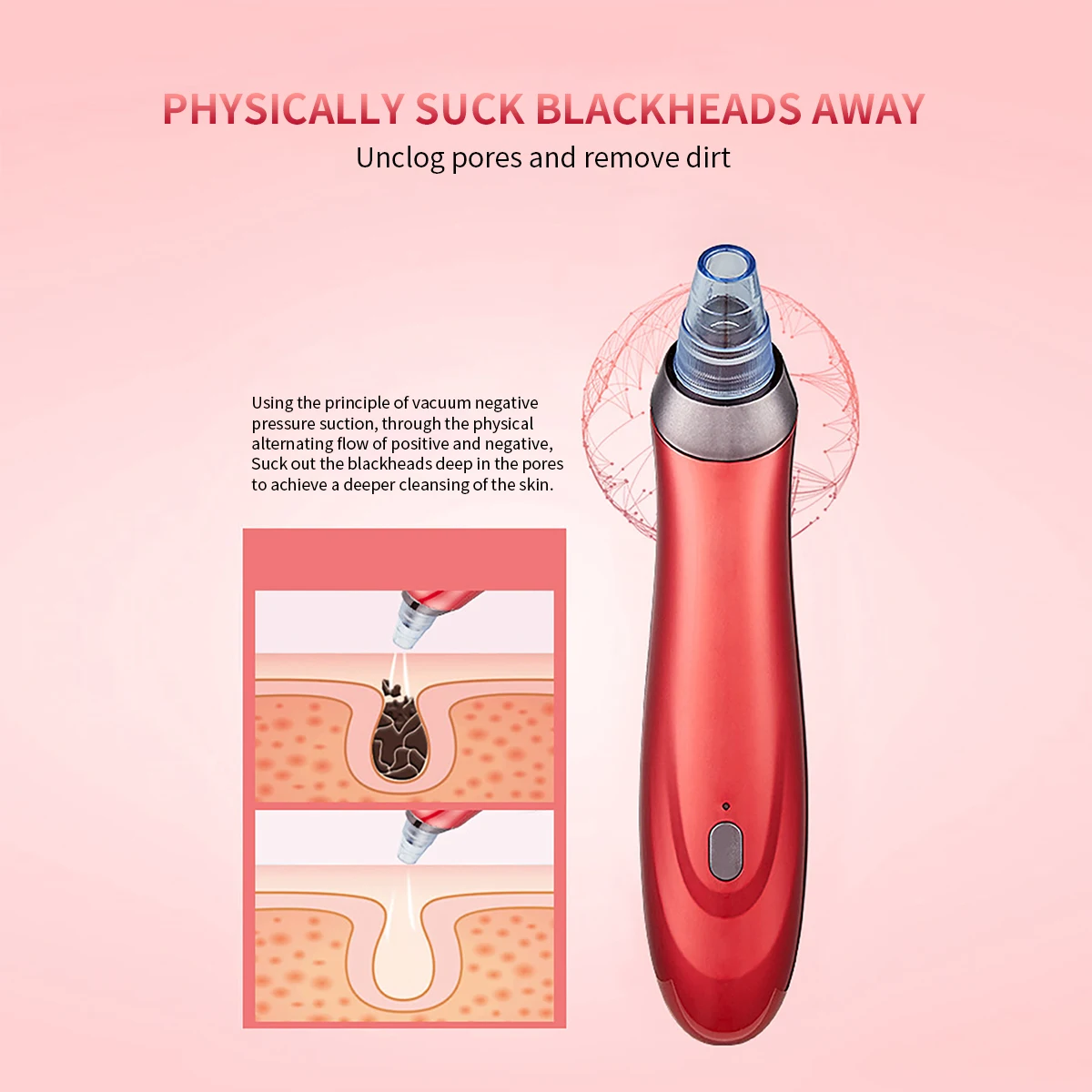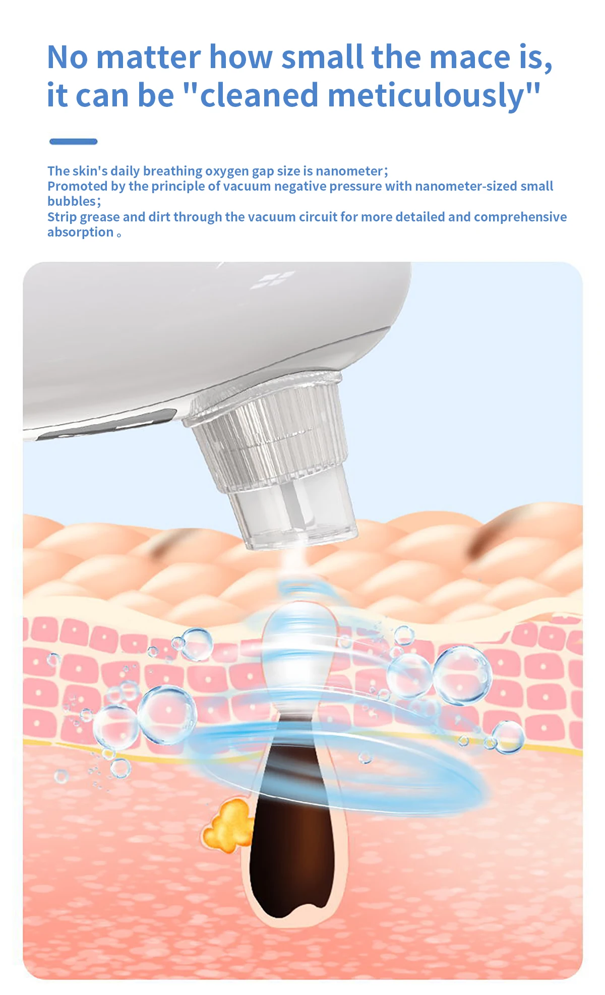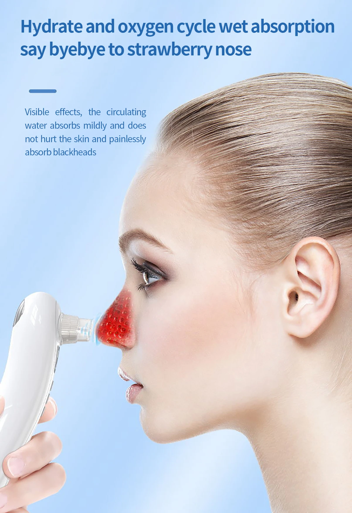 The product has 3 suction levels for meet different skin types, and protect your skin from damage, you can adjust it according the blackhead severity and skin types.