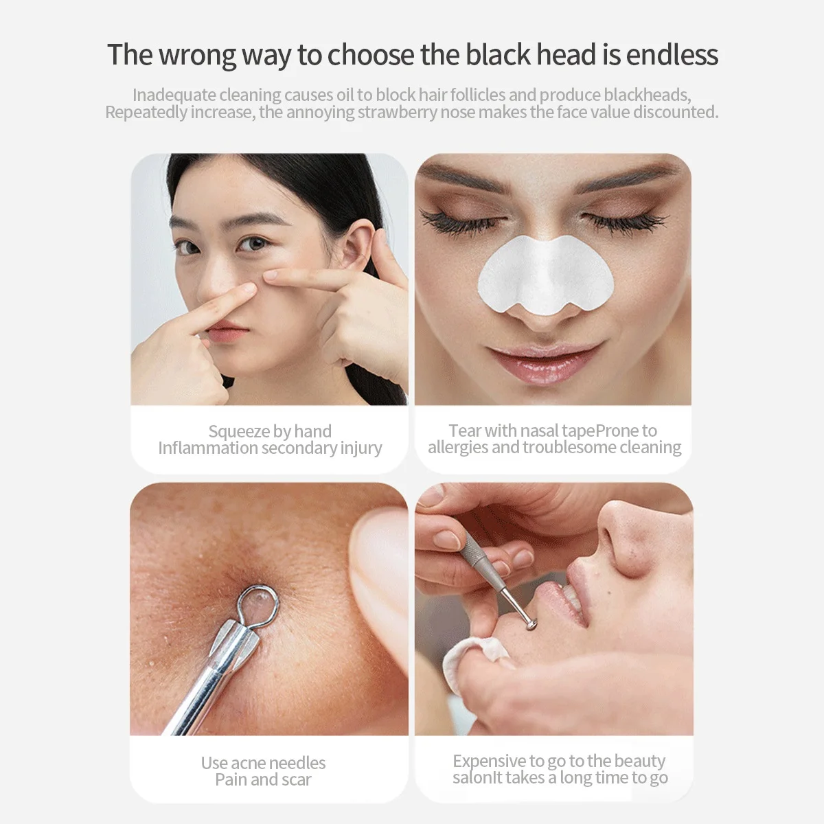 ✍Use a hot towel or blackhead liquid to apply on the facial skin and keep it for 5-10 minutes to open the pores and soften the skin;