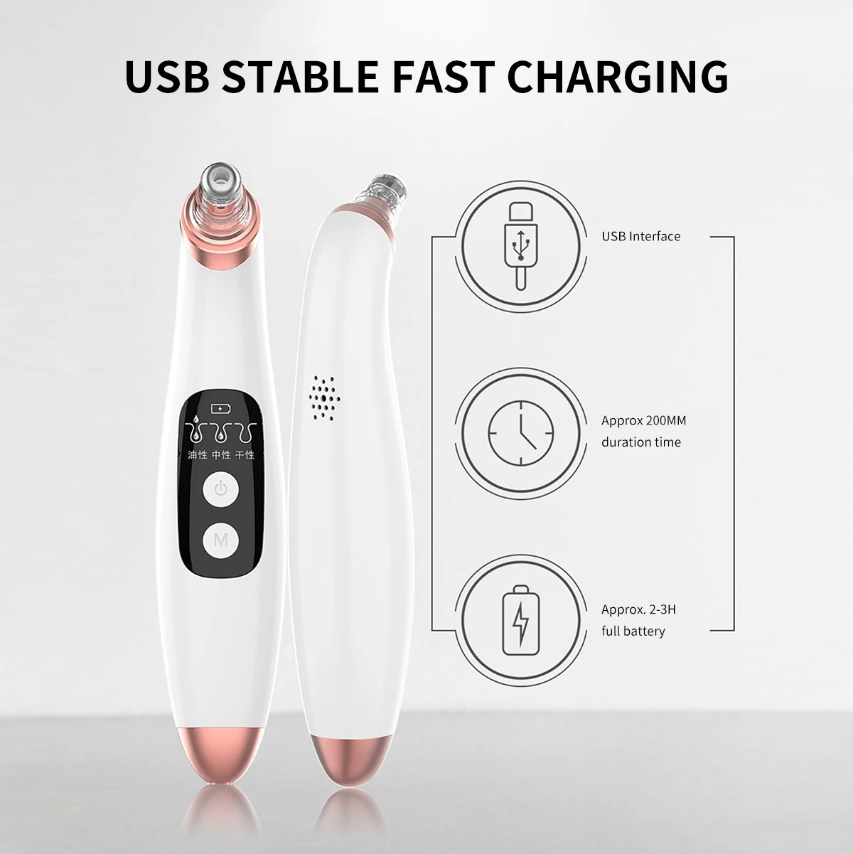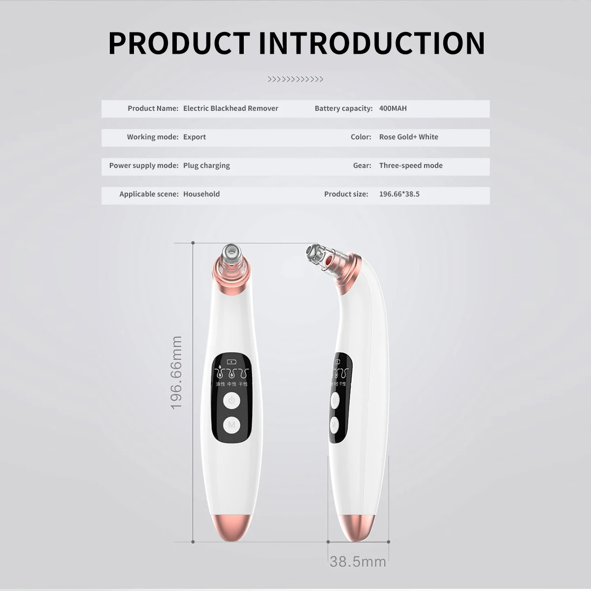 The low gear is suitable for sensitive skin, medium gear is suitable for moderate blackhead skin,