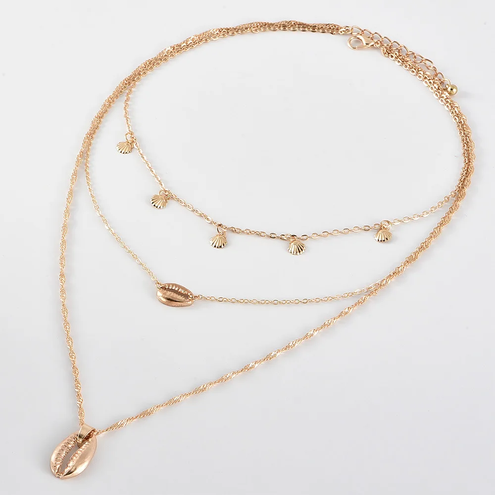 Eif Dock Bohemian Summer Shell Pendant Necklace for Women Gold Chain Chocker Beach Party Jewerlry Accessories Dropship