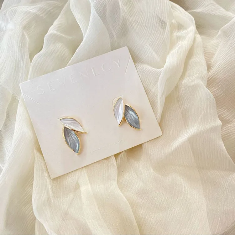 Korean Arrival Metal Trendy Fresh Lovely Sweet Grey Leaf Stud Earrings For Women Fashion Party Jewelry Beautiful Gift 2021