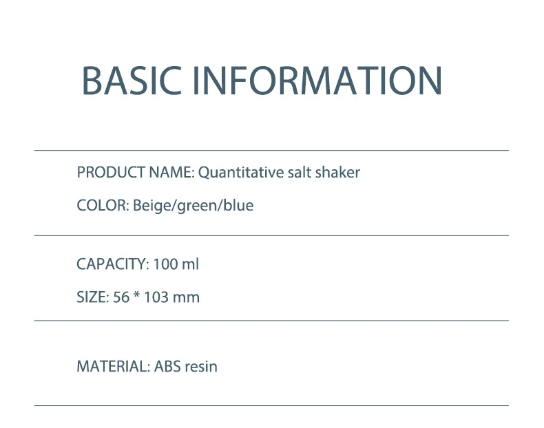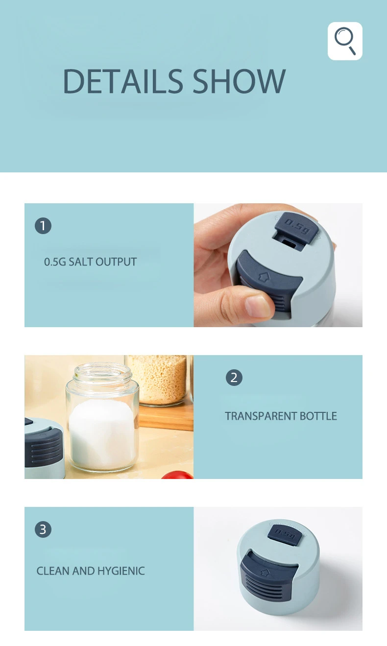 Quantitative salt shaker accurately controls salt by 0.5g each time to avoid excessive salt causing harm to the body. Eat a healthy diet and stay away from diseases.