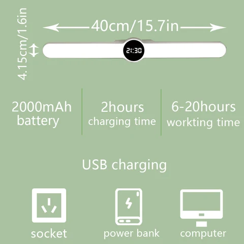 Cabinet Light Clock Table Lamp Portable Stepless Dimming Desk Lamp Timing Kitchen Reading Office Night Light