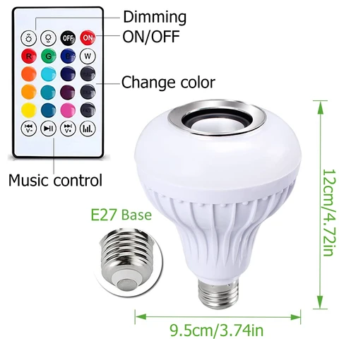 • Bulb Bluetooth Lamp LED Bulb E27 Bluetooth Speaker Music Bulb Smart Lamp Dimmable App 12W Music RGB Decor Smart Home