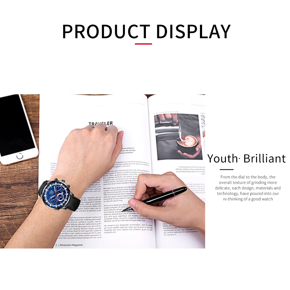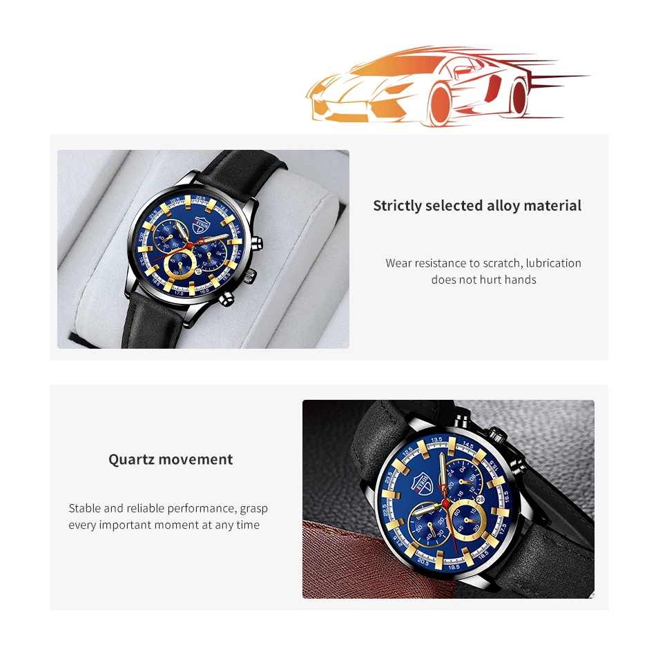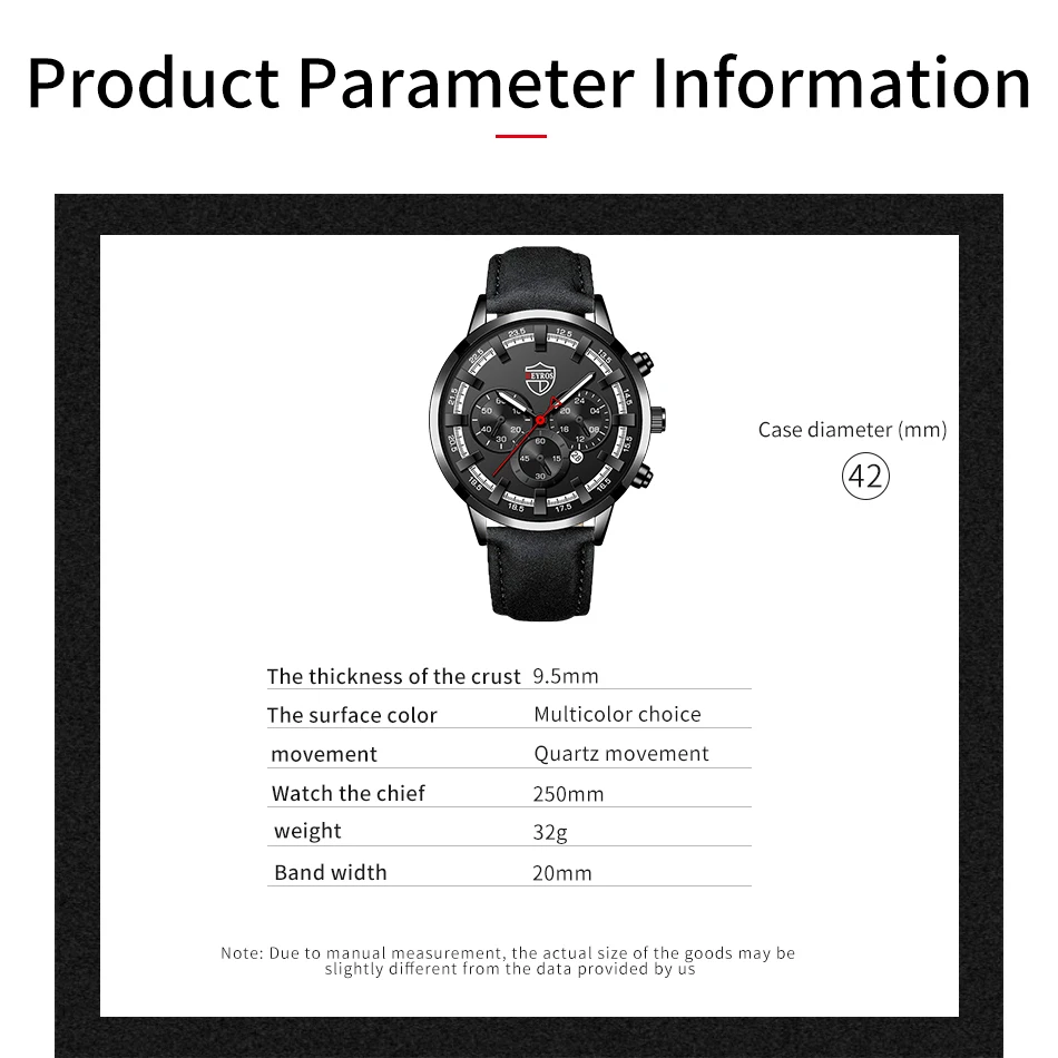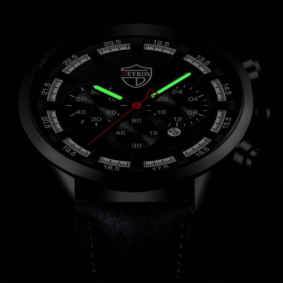 Brand Mens Watches Men Business Leather Quartz Calendar Date Wristwatch Black Bracelet New Male Casual Luminous Clock