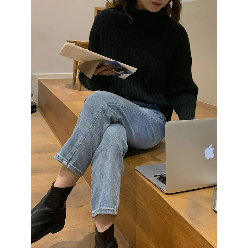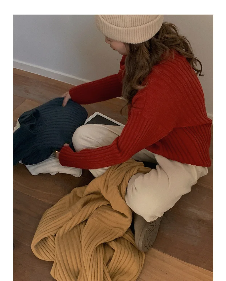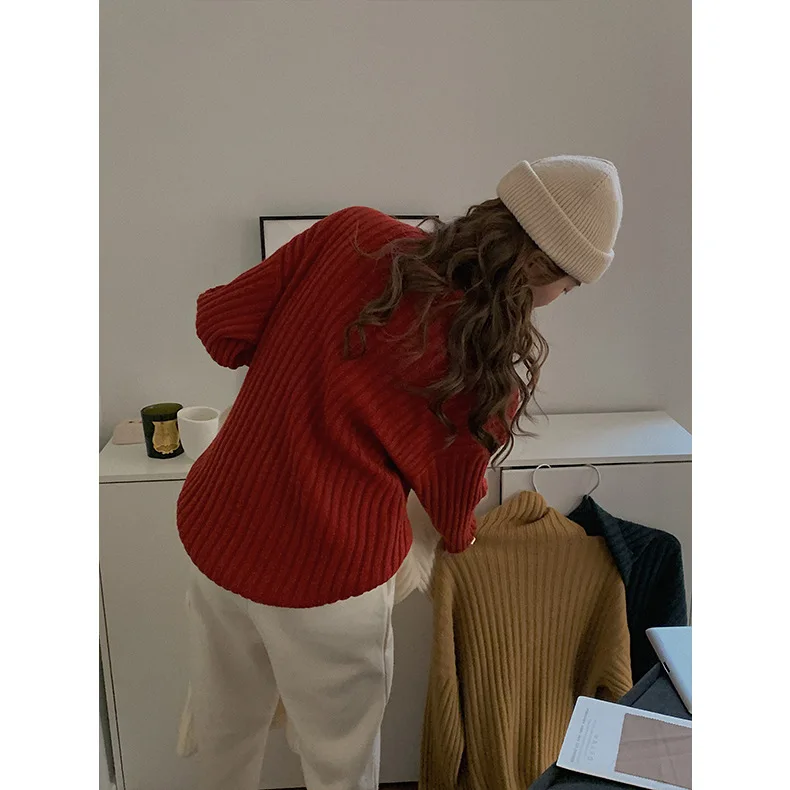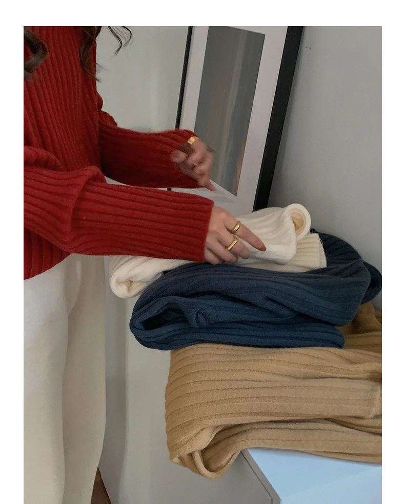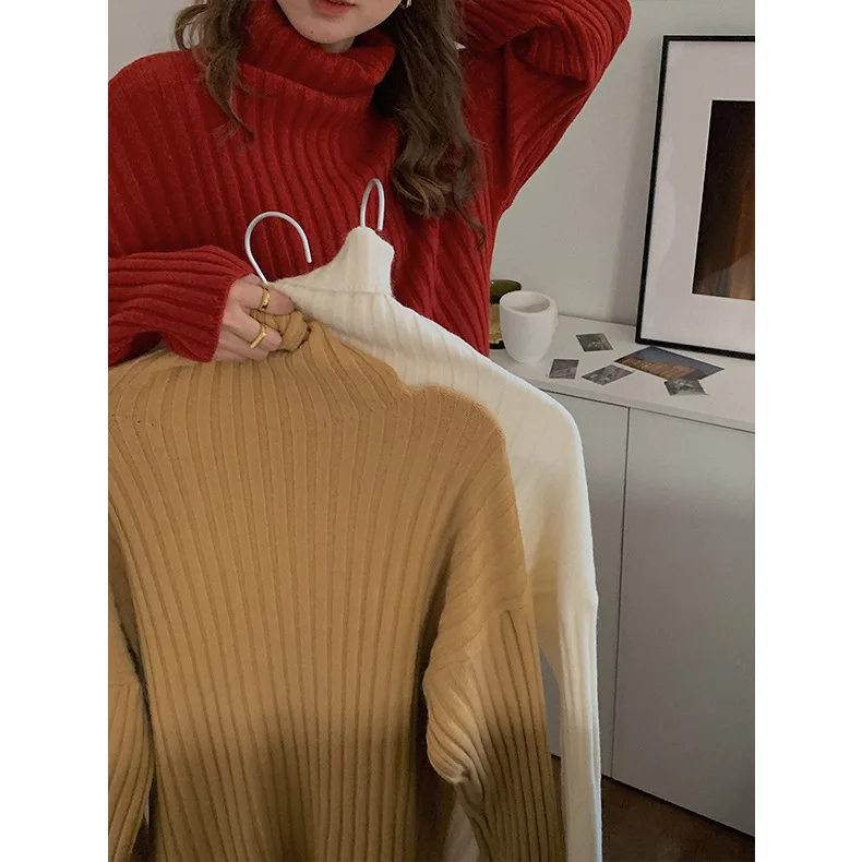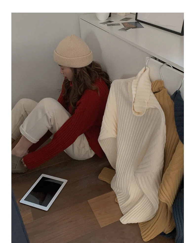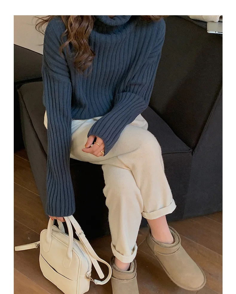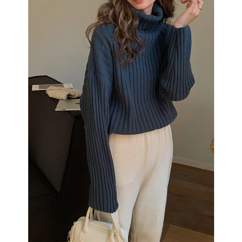 Women Autumn Turtleneck Sweater Knitted Long Sleeve Sweater Solid Color Casual Women Pullovers Pull Femme