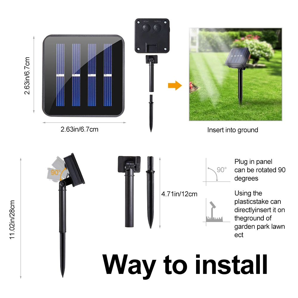 • Solar powered, 8 modes can be adjusted. Automatically charge during the day and work automatically at night. The length reaches 10 meters/32FT, 100LED, and the small lamp beads are evenly distributed.
