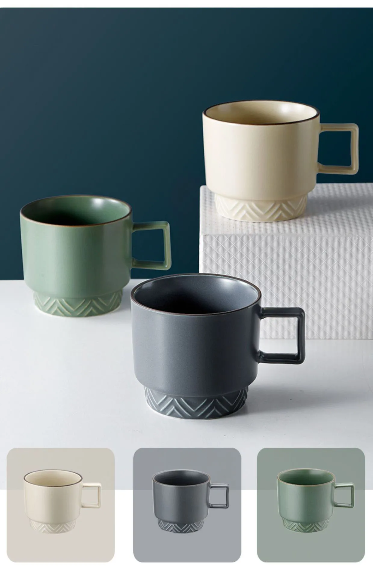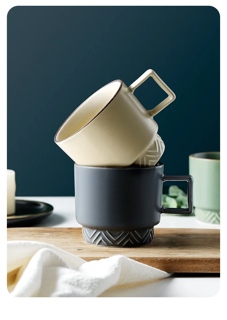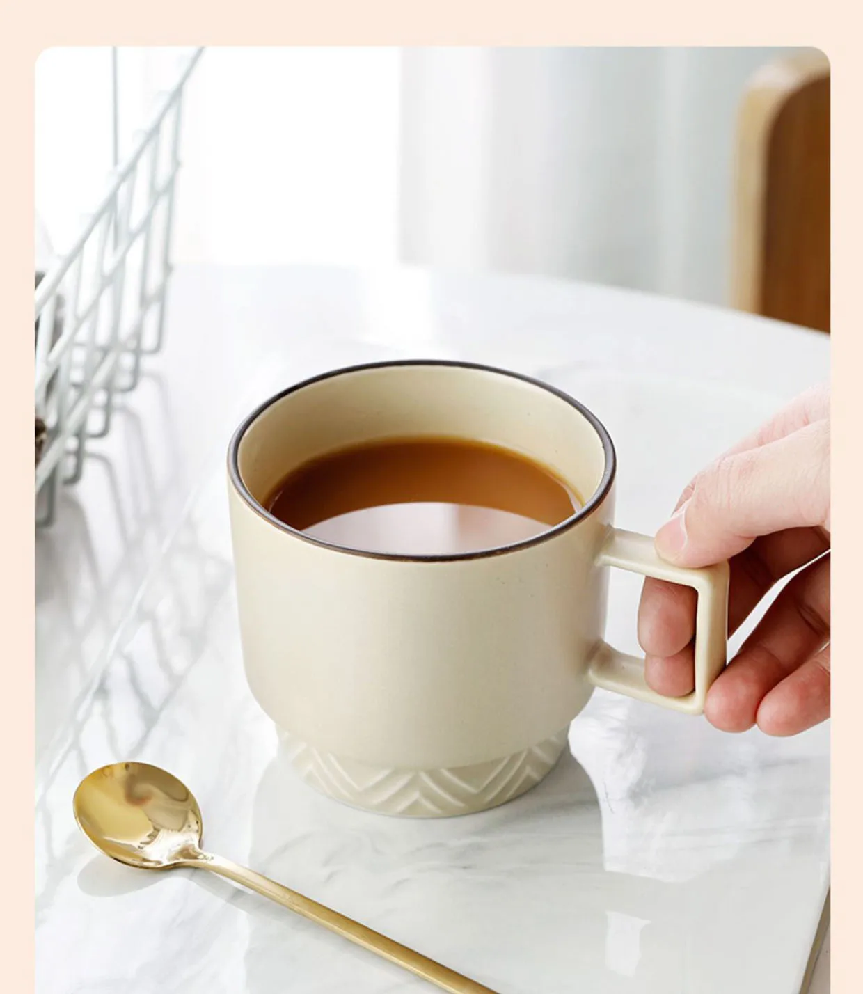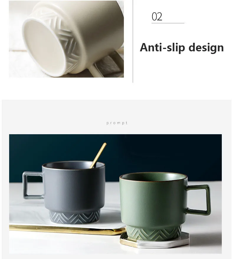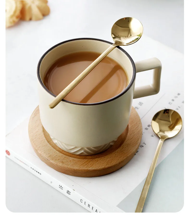 Nordic ins Style Ceramic Mug Condensed Coffee Porcelain Tea Cups and Saucer Sets Retro Japanese Bone China Mugs With Spoon Cup