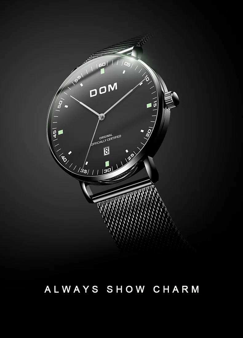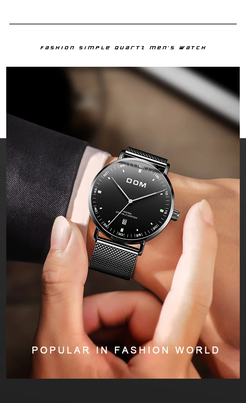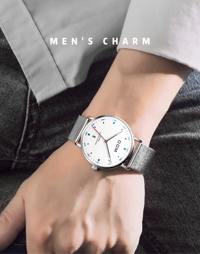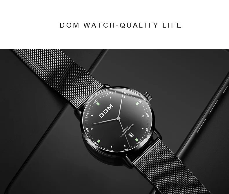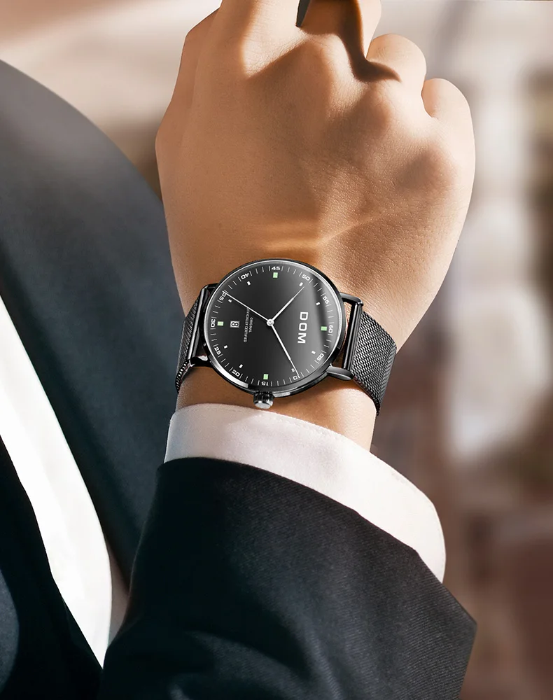 DOM Men's Fashion Business Quartz Wrist Watches Stainless Steel Waterproof Analog Watch Men Calendar Clock Relogio Masculino