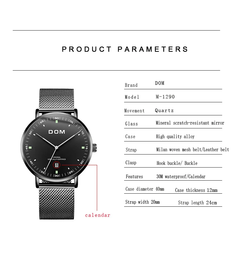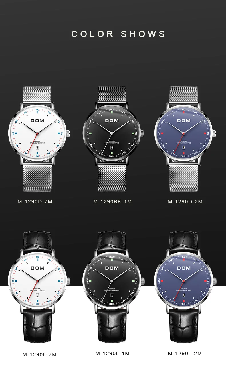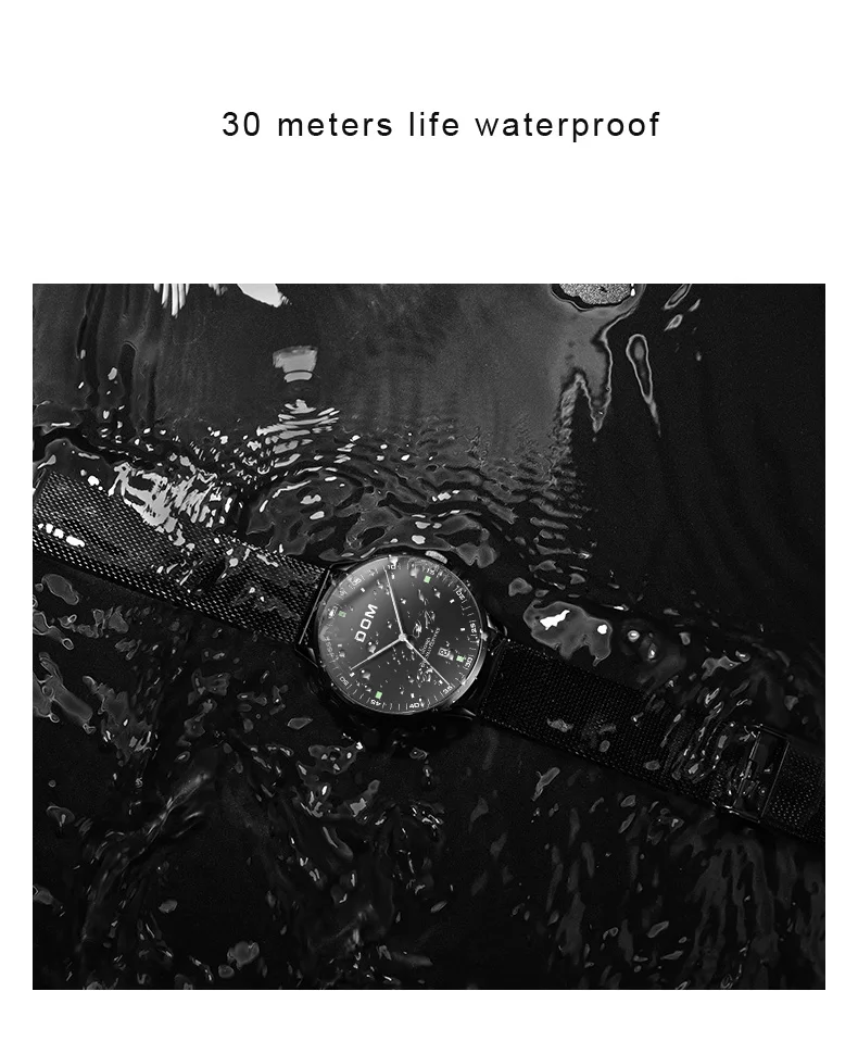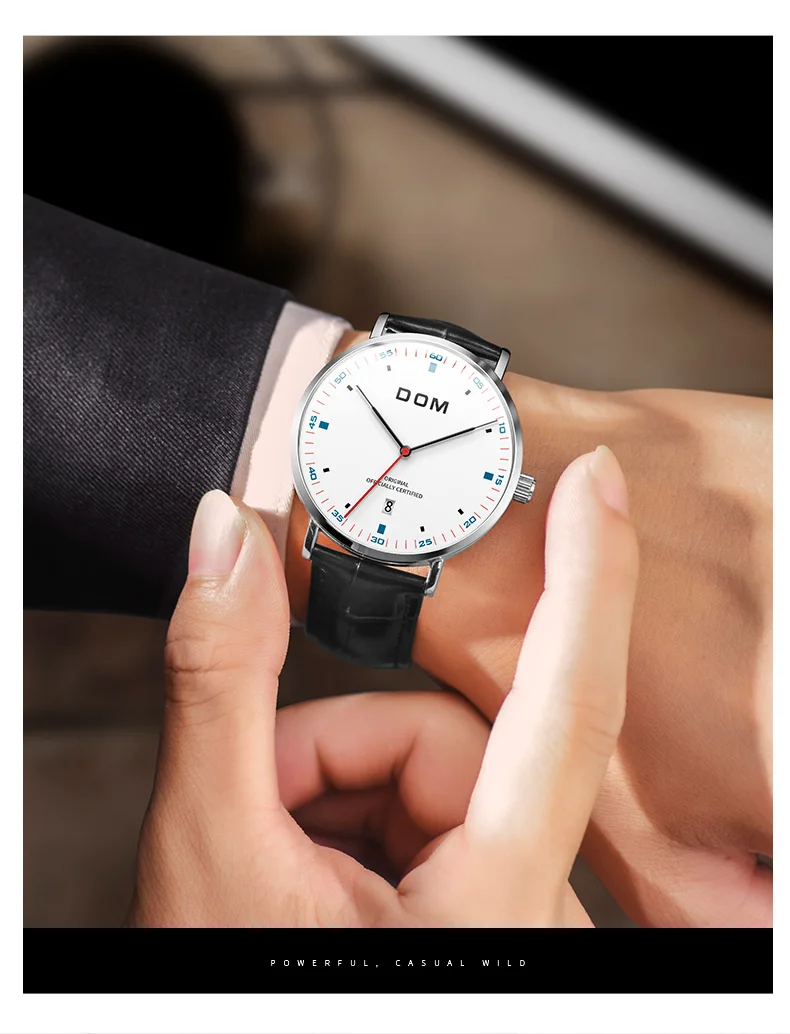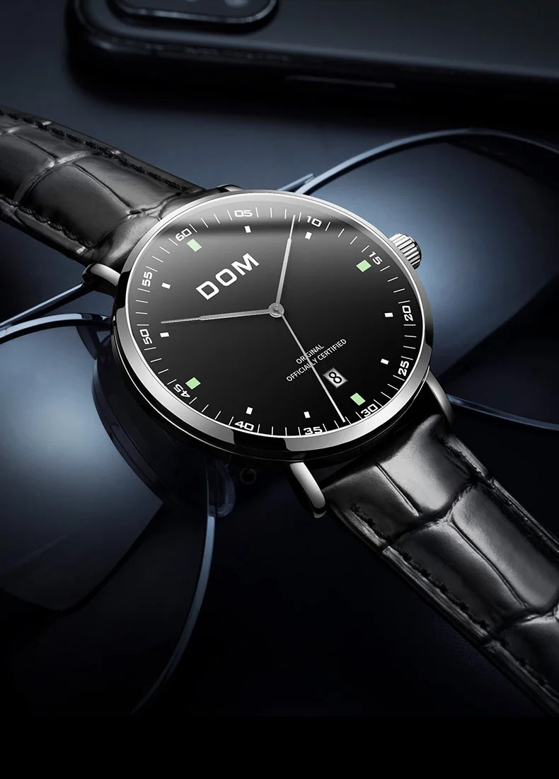 DOM Men's Fashion Business Quartz Wrist Watches Stainless Steel Waterproof Analog Watch Men Calendar Clock Relogio Masculino