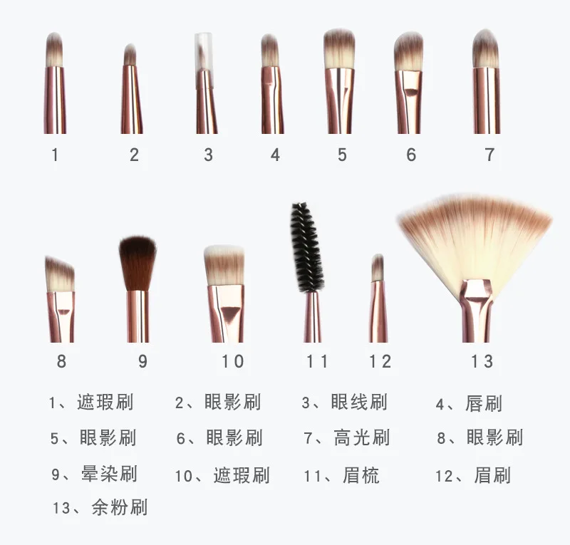 Basic configuration: Honey brush, concealer brush, blush brush, eye shadow brush, eyebrow brush and lip brush.