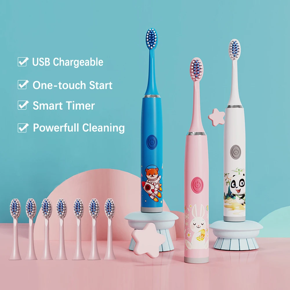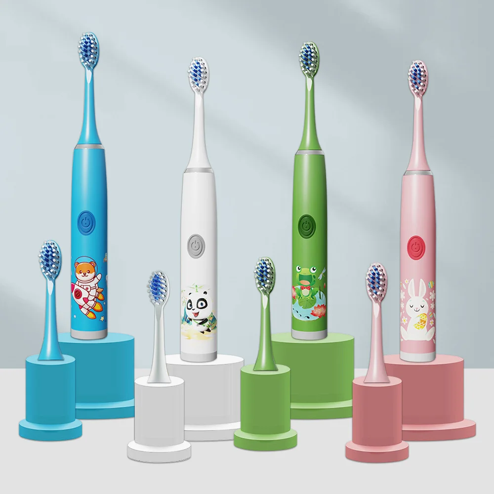 Electric Toothbrush For Kids Cartoon Panda Kids 8pc Replace Toothbrush Head 3-15 Age Ultrasonic Electric Toothbrush