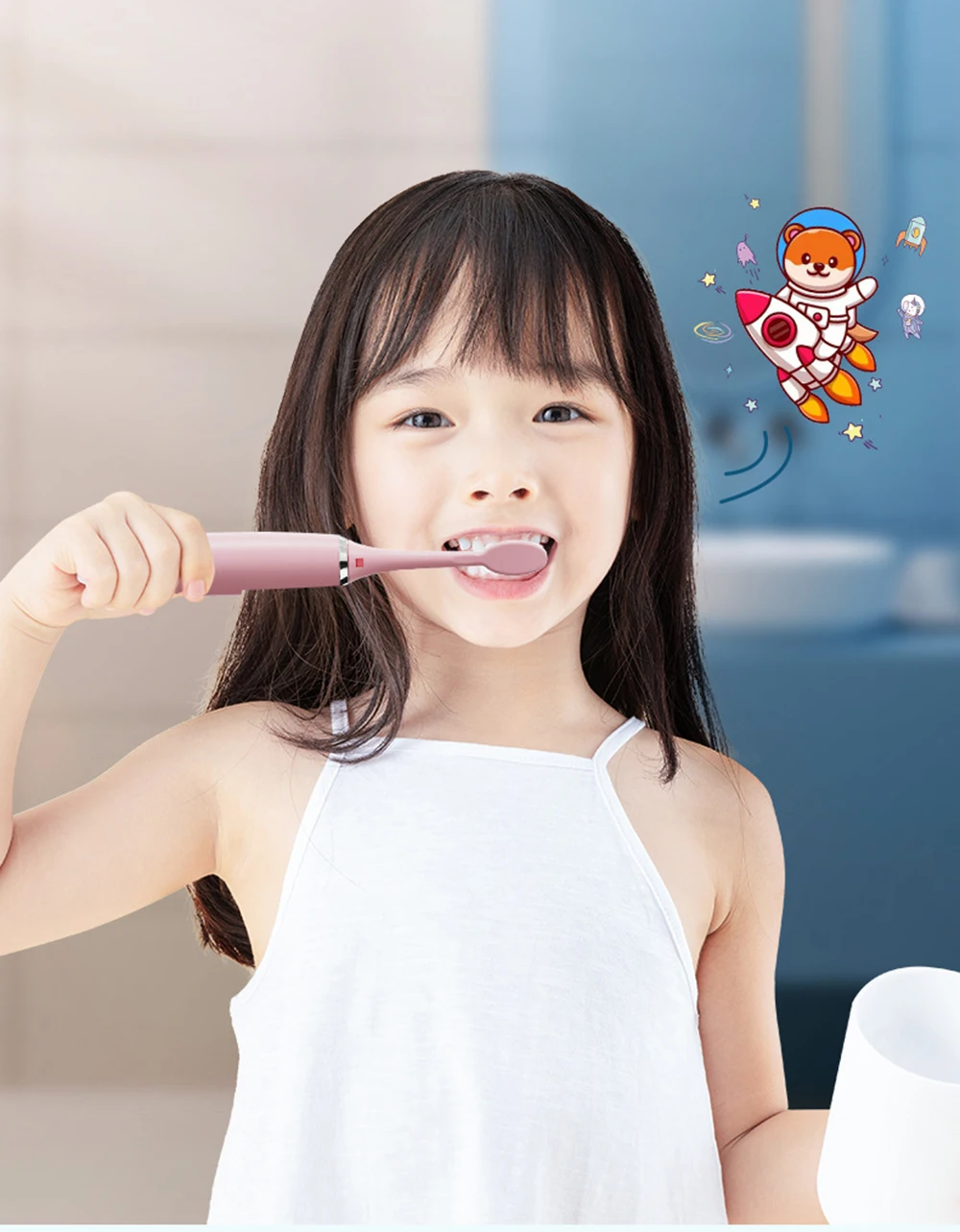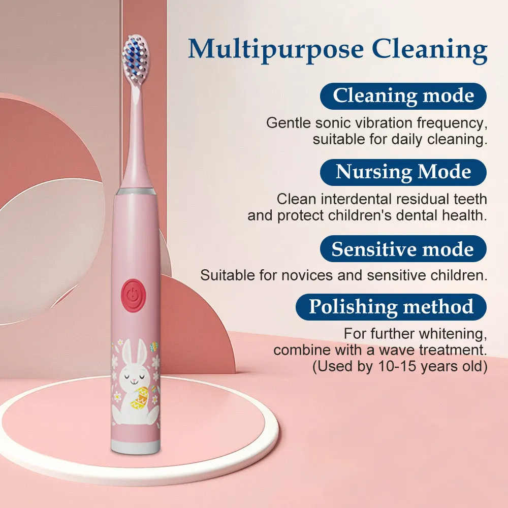 4. 4 brushing modes (cleaning mode/care mode/sensitive mode/polishing mode) to meet different cleaning needs and protect children's dental health.