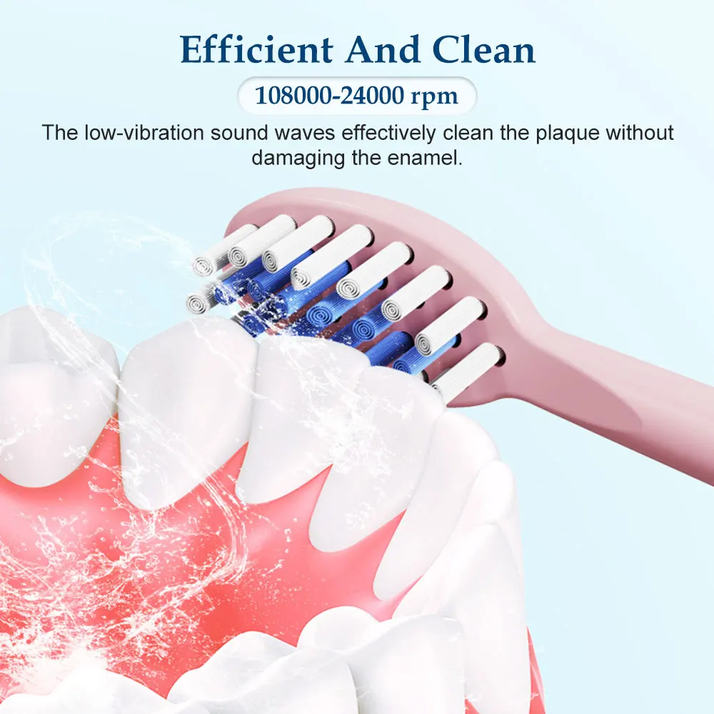 3. Vibration frequency of 19800 times per minute, low noise of 60db, powerful and efficient cleaning of the oral cavity, gently drive away the dirt in the teeth gap.