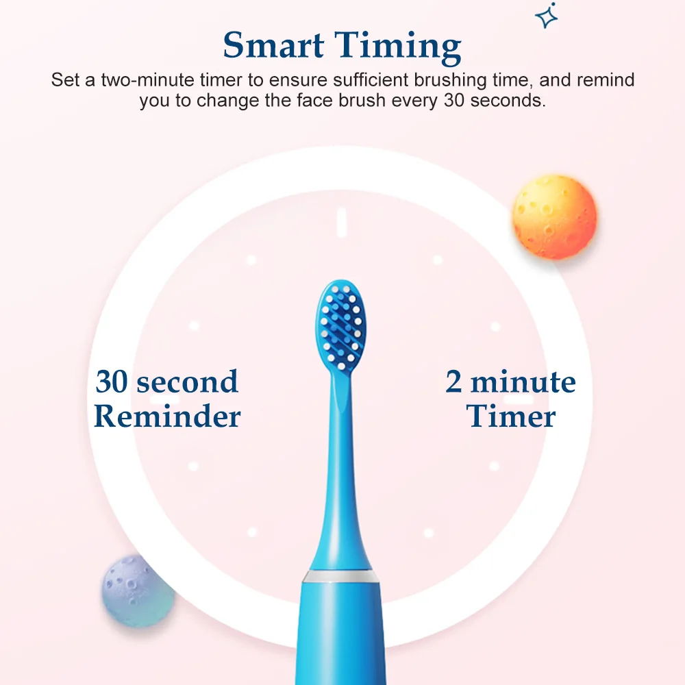 7. 2 minutes smart timing, 30 seconds to change zone reminder, to prevent children from brushing their teeth for too long and causing damage to the teeth.