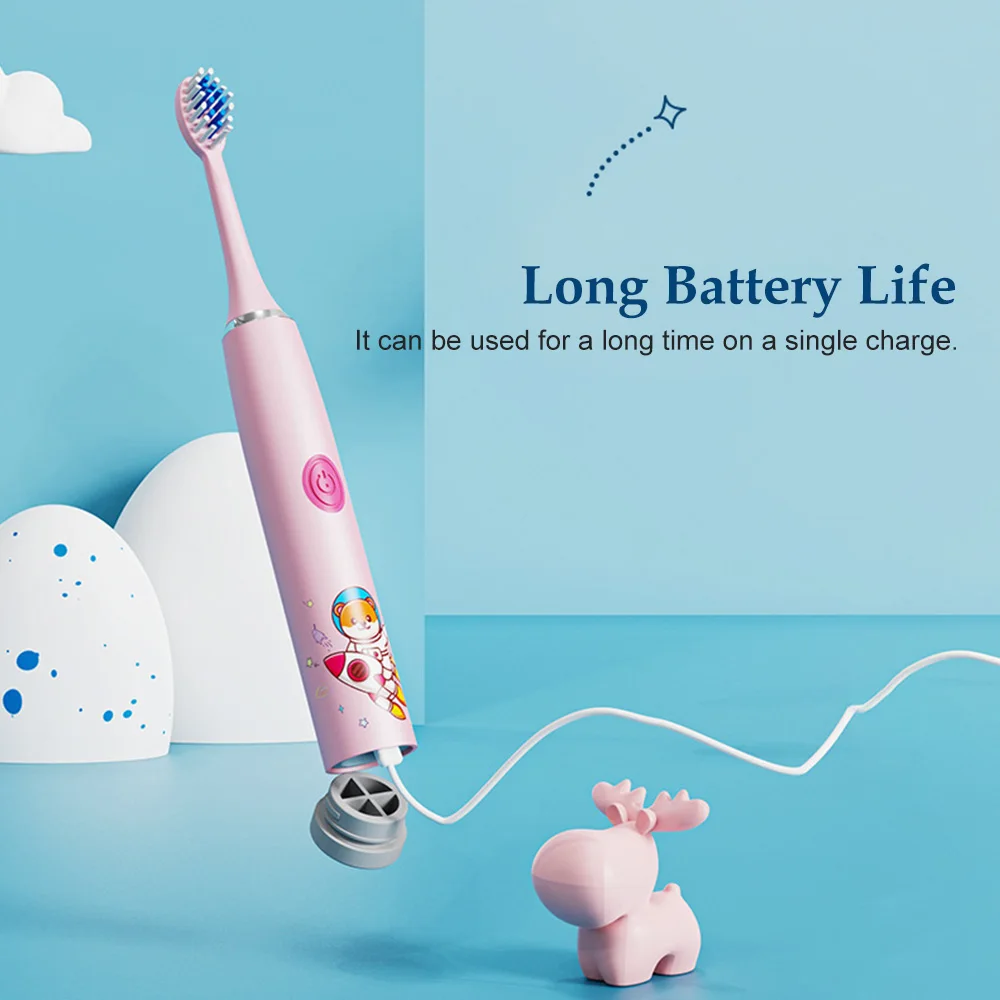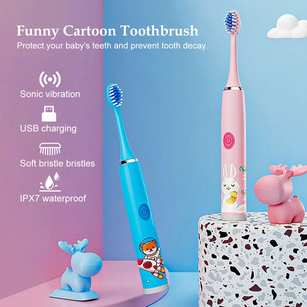 Children Electric Toothbrush For Kids Cartoon Pattern Kids with Replace Toothbrush Head 3-15 Age Ultrasonic Electric Toothbrush