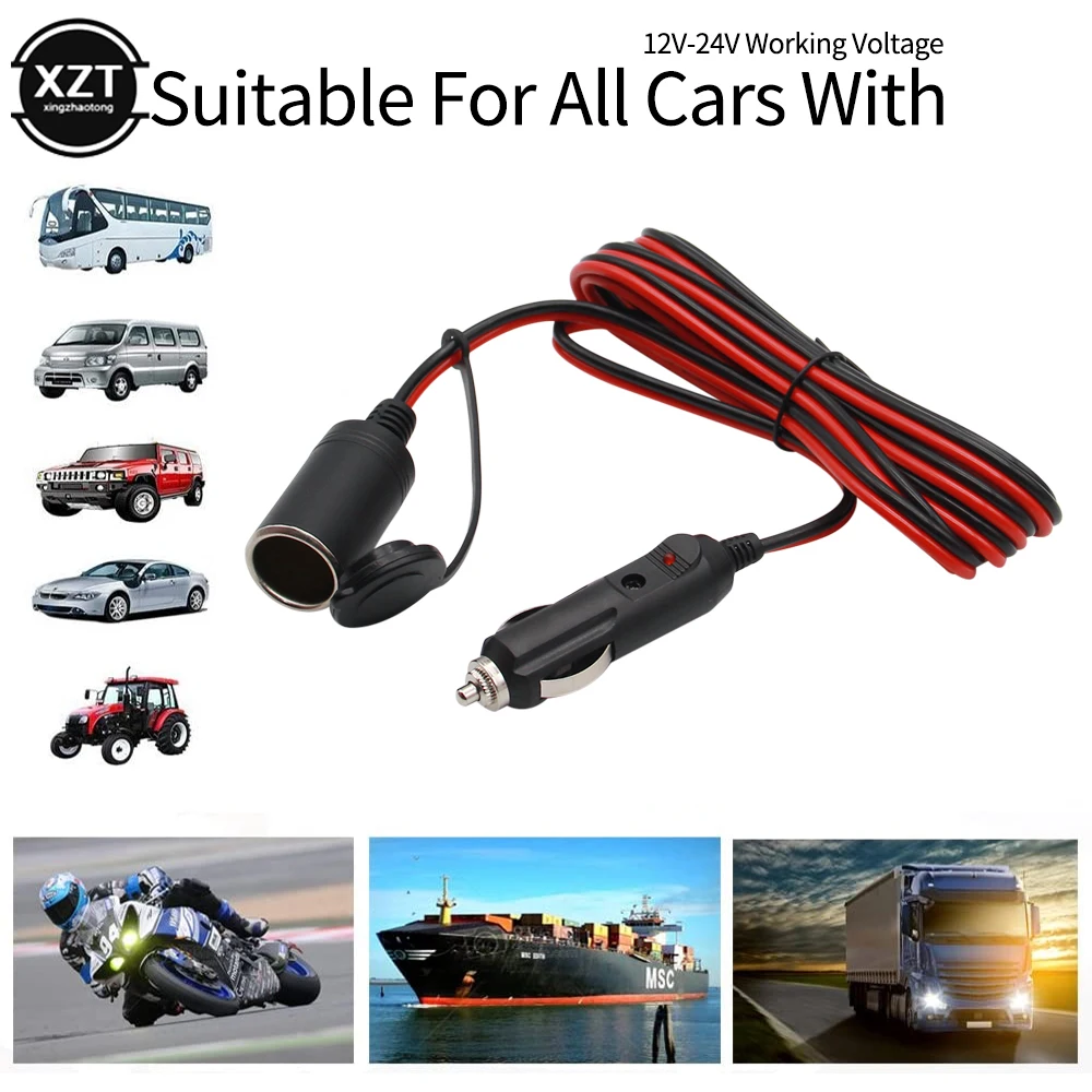 3M 12V / 24V Car Cigarette Lighter Extension Cable Dustproof Waterproof Car Splitter Charger Cable Socket Plug Auto Accessories
