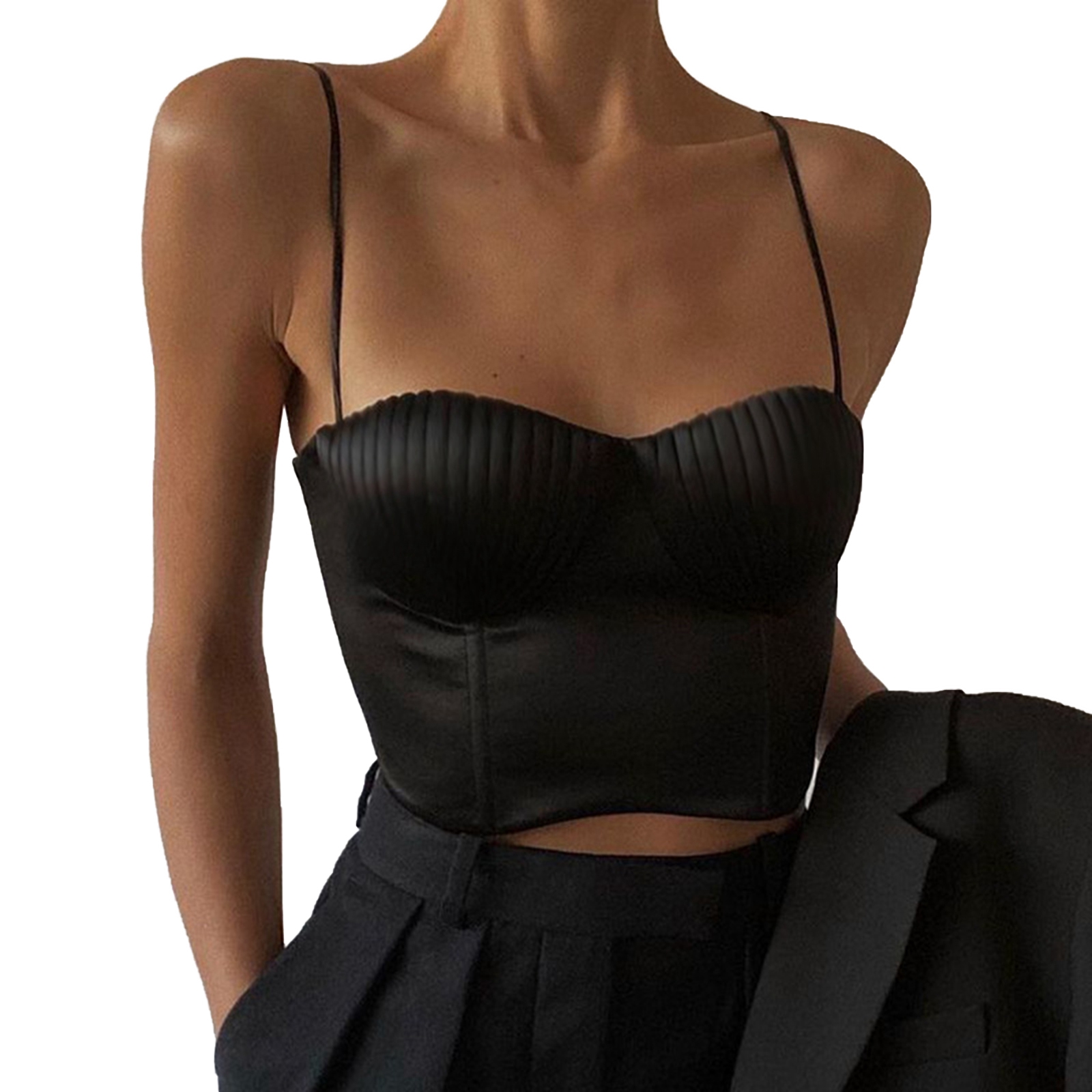 Sleeveless and spaghetti strap tops, low-cut and midriff-baring design, solid color, simple and stylish.
