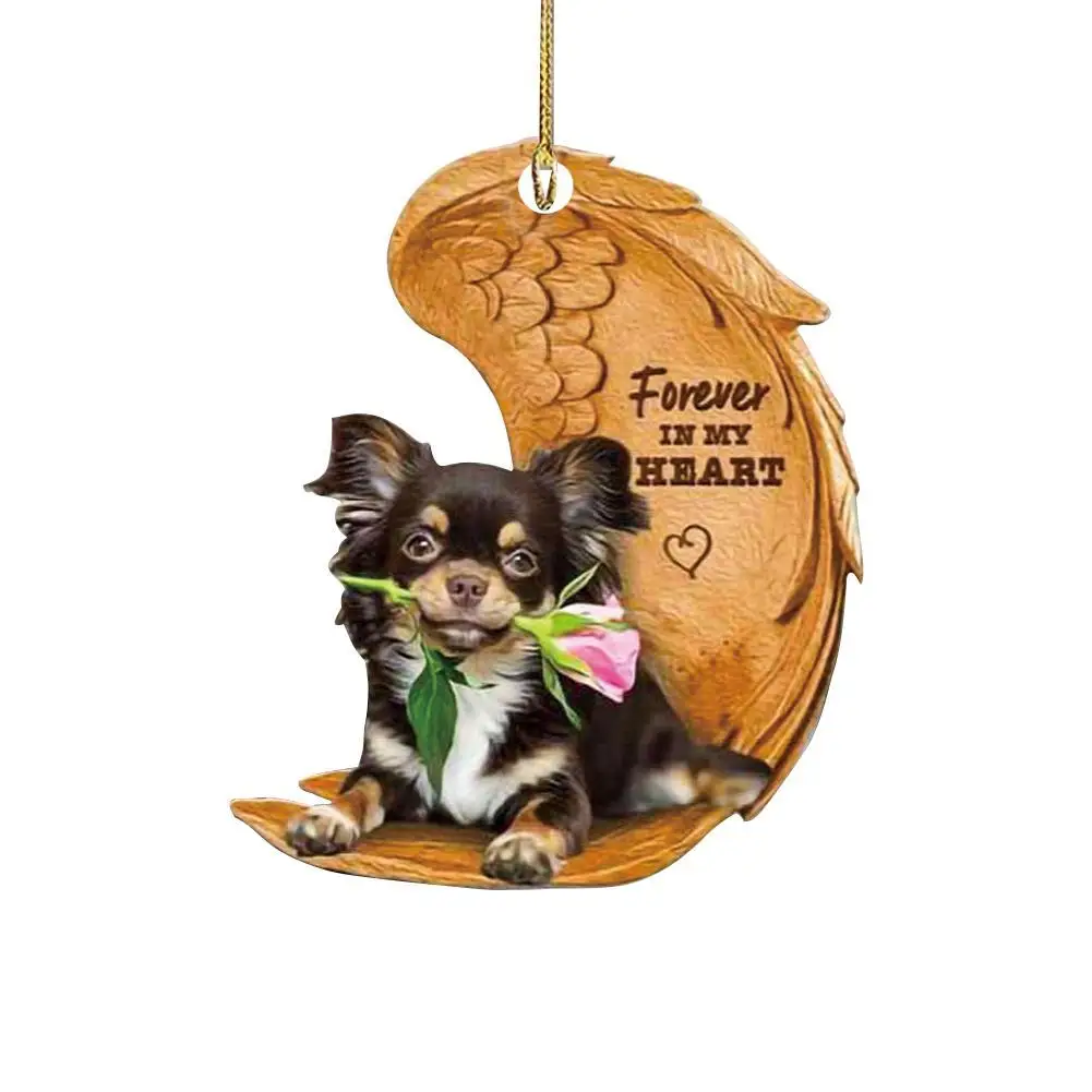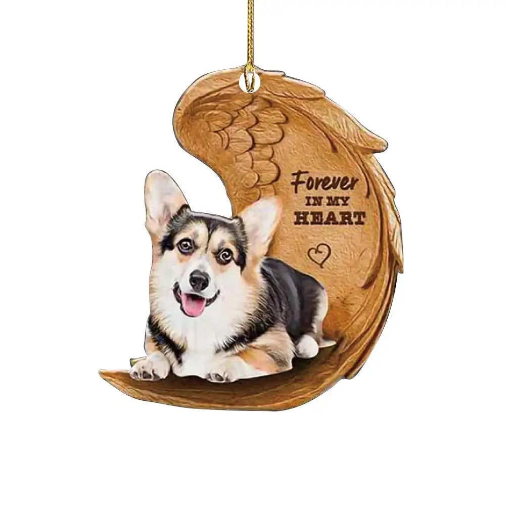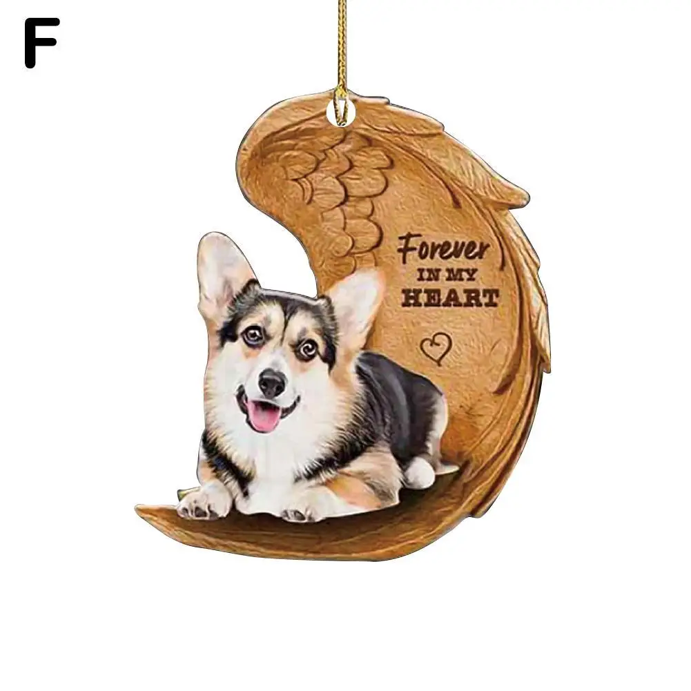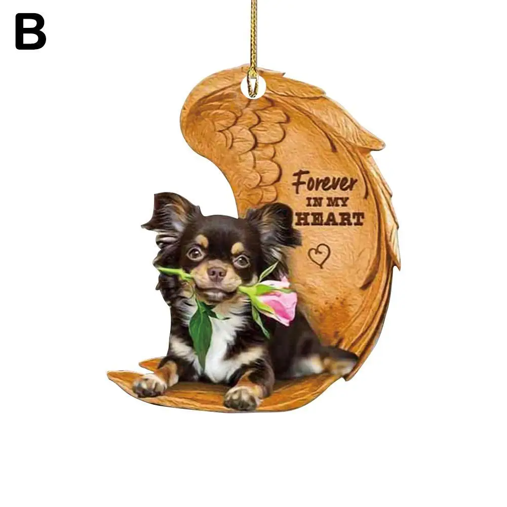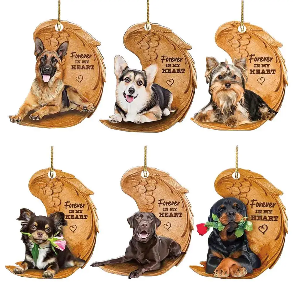 Funny Dog Sleeping Angel Acrylic Wing Dog Hanging Ornament Cartoon Car Pendant Bag Keychain for Rear View Mirror Decoration