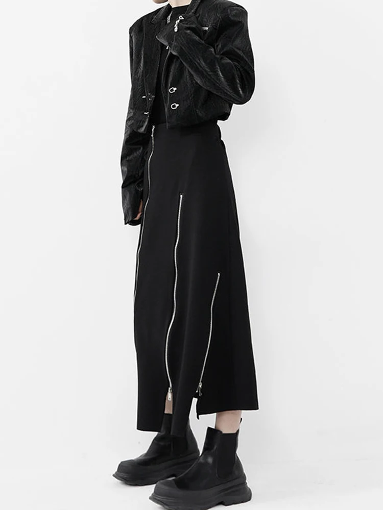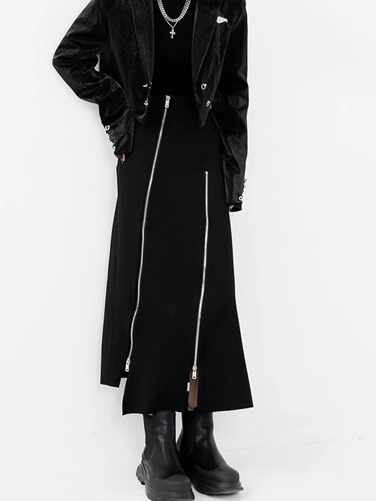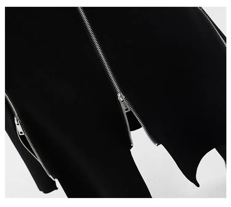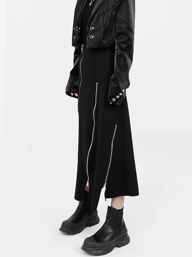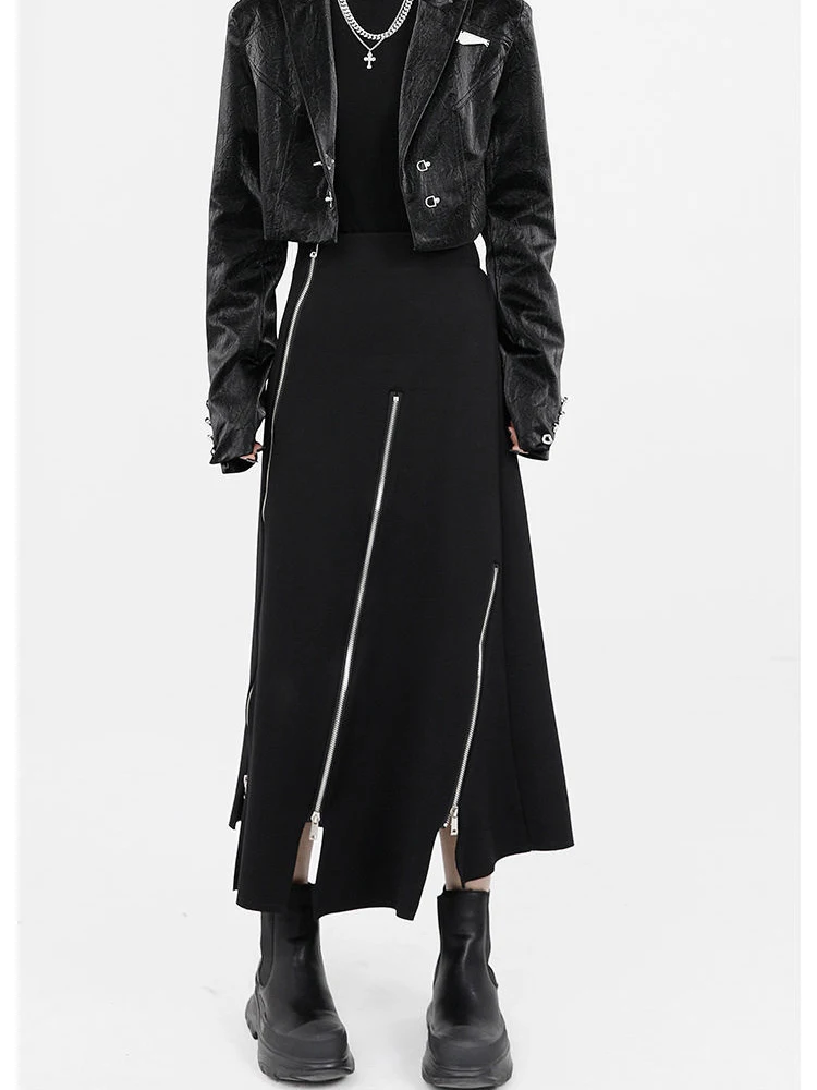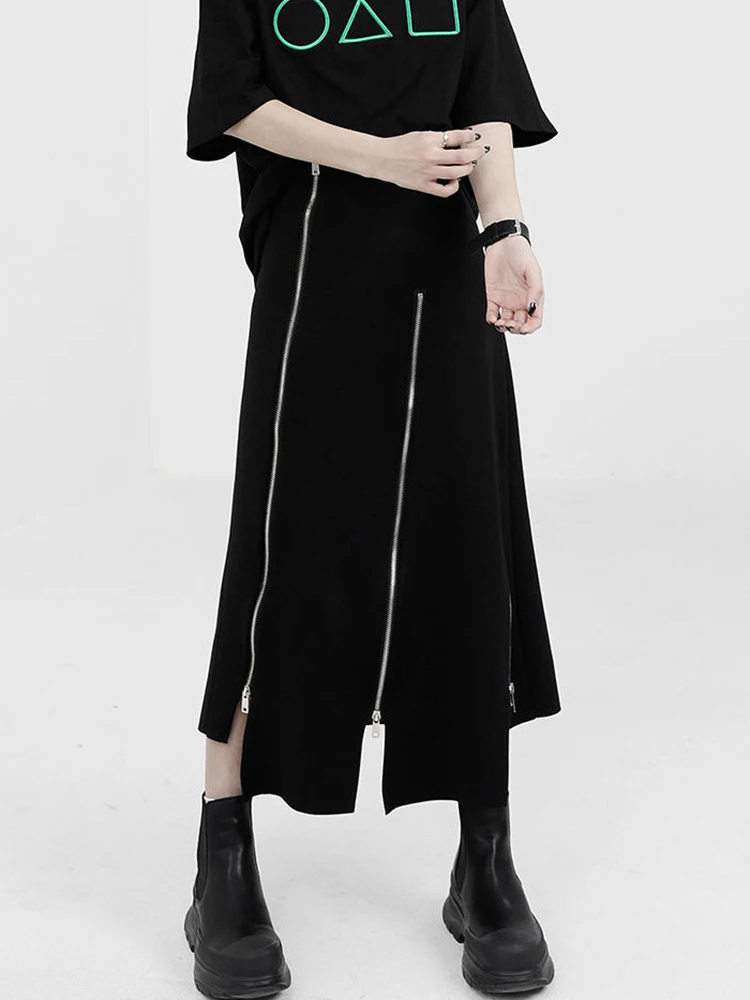 New Black Zipper Skirt Women A-line High Waist Mid-length Irregular Half Skirt Streetwear Loose Skirt