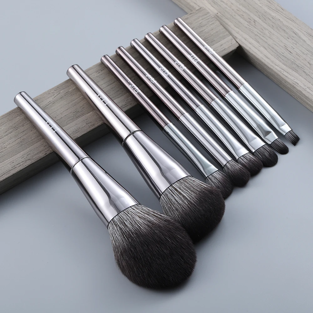 FLD Long Tube Makeup Brushes Travel Set Professional Natural Hair Powder Foundation Eyeshadow Contour Eyebrow Cosmetic Brush Kit