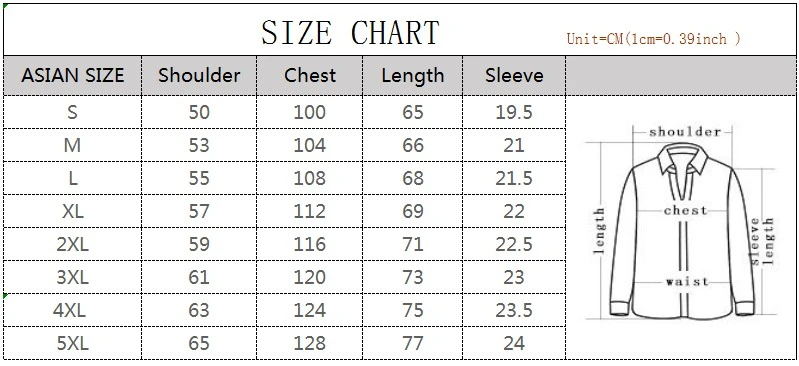 Note: We sell ASIAN SIZE is about 2-3 sizeSMALLER than US,UK,AU,EU size.Please choose the size according to our size form.All the dimensions we have personally measured and reality try. When you place the order please live the message with your Shoulder(CM) and Chest(CM) .We will help you to confirm the size.Think you for buying !