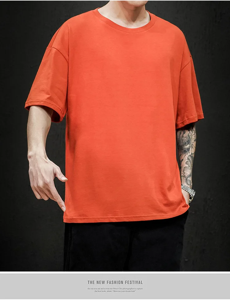 Summer Men T Shirt Fashion Streetwear T Shirt Mens Oversized Soild Color Short Sleeve Casual O Neck Top Tees Mens Clothing