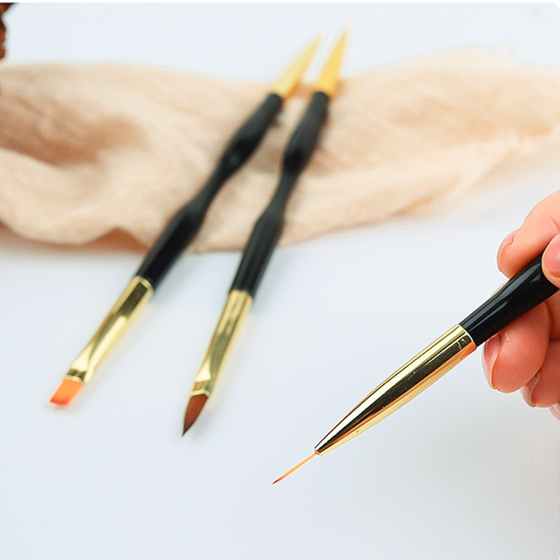 Double Head Nail Art Brush UV Gel Polish Design Dot Painting Detailing Pen Brushes Carving Drawing Hooking Pen Nail Brush