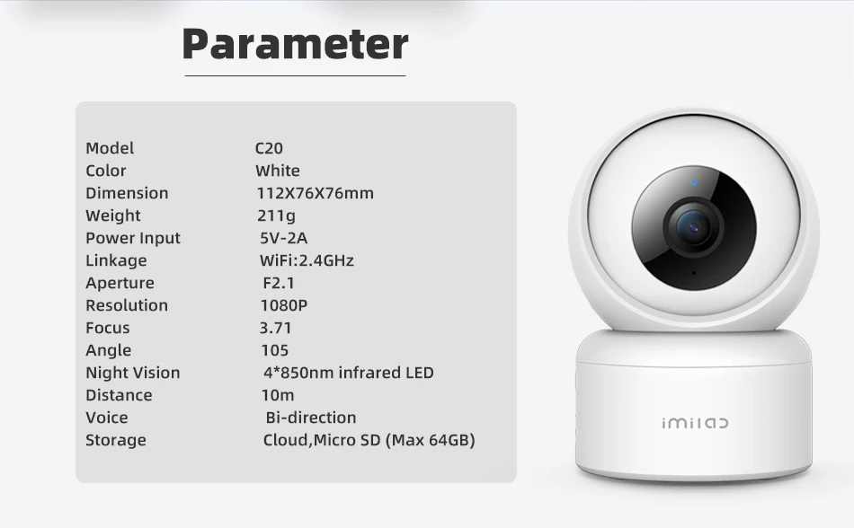 Xiaobai intelligent camera PTZ version C20: support duplex mode, two-way call