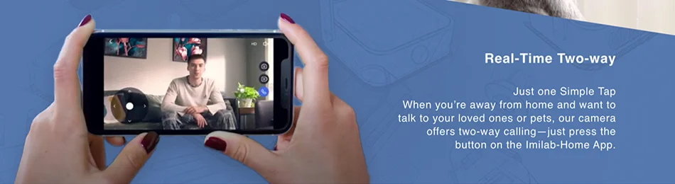 Just one simple tap when you're away from home and want to talk to your loved ones or pets,our camera offers two-way calling -Just press the button on the lmilab-Home APP.