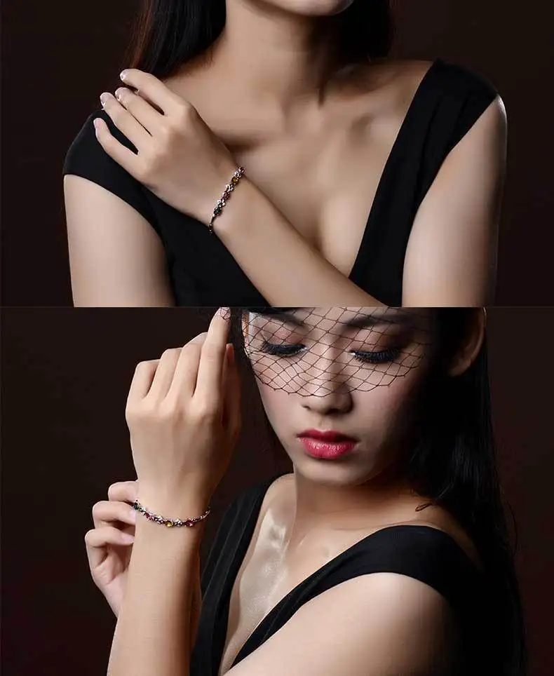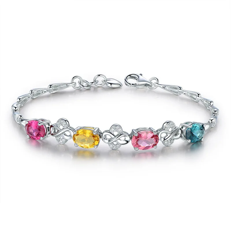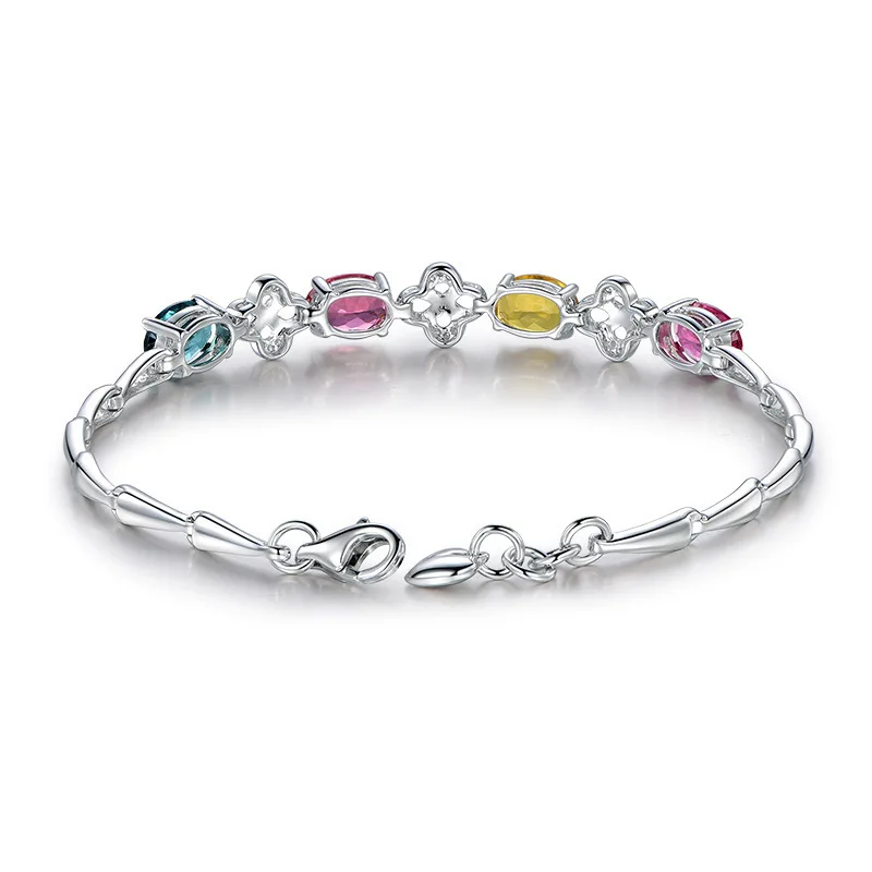 925 Sterling Silver Bracelet Crystal Colorful Gemstone Exquisite Silver Bracelet For Woman Charm Jewelry Gift