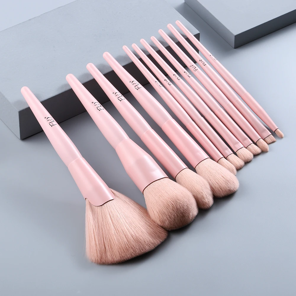 FLD 11Pcs Pink Fan Makeup Brushes Foundation Powder Eyeshadow Eyebrow Highlight Make Up Brush Set Tool Brocha Maquillaje 6Colors