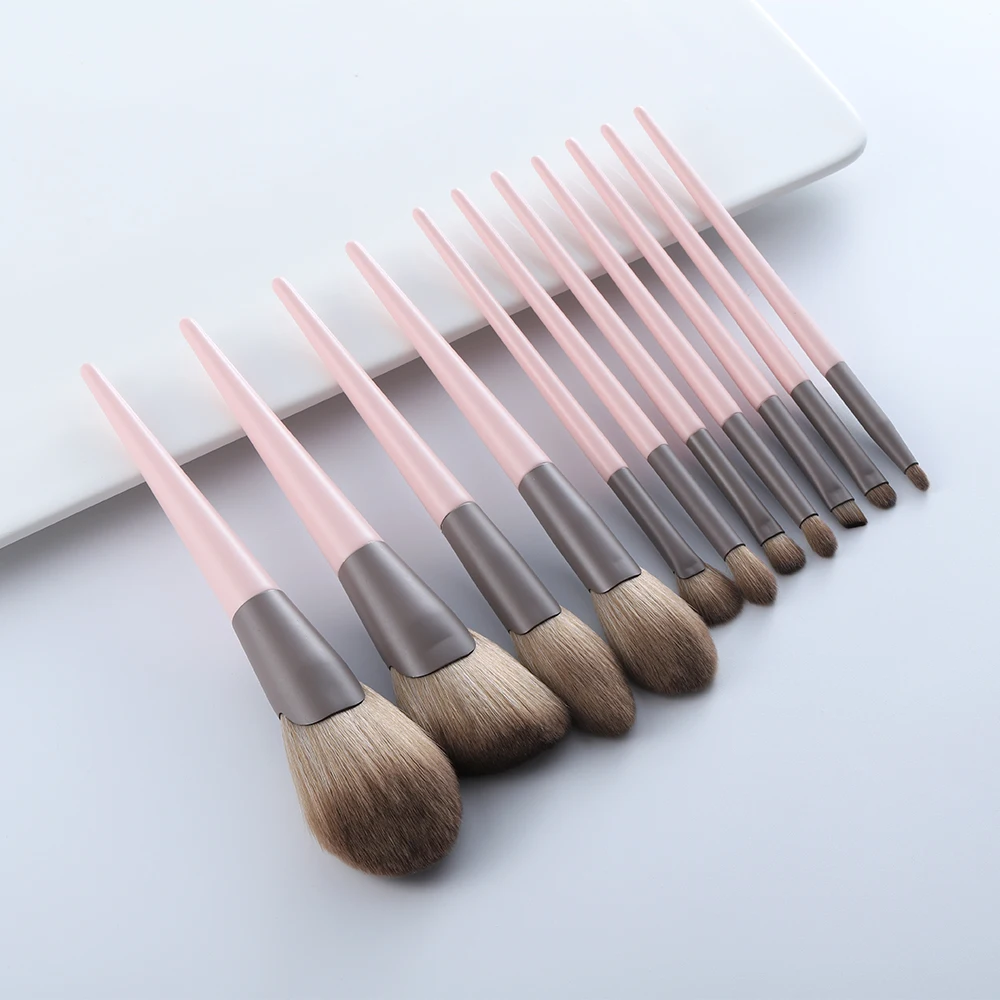 11Pcs Pink Fan Makeup Brushes Foundation Powder Eyeshadow Eyebrow Highlight Make Up Brush Set Tool Brocha Maquillaje 6Colors
