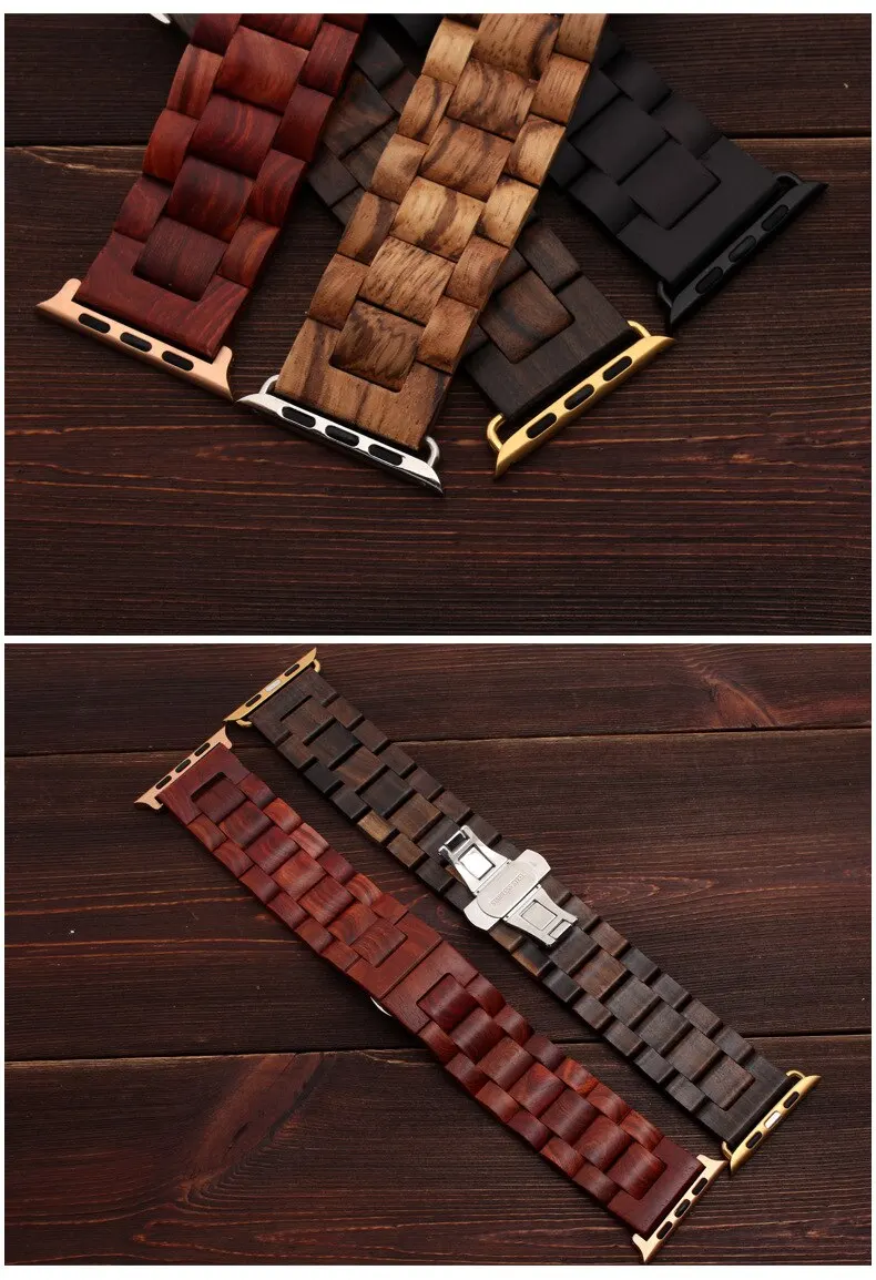 Wooden strap for Apple watch band 44 mm 40mm iWatch band 42mm 38mm Metal Butterfly clasp bracelet Apple watch 5 4 3 2 1 series