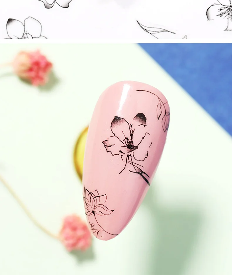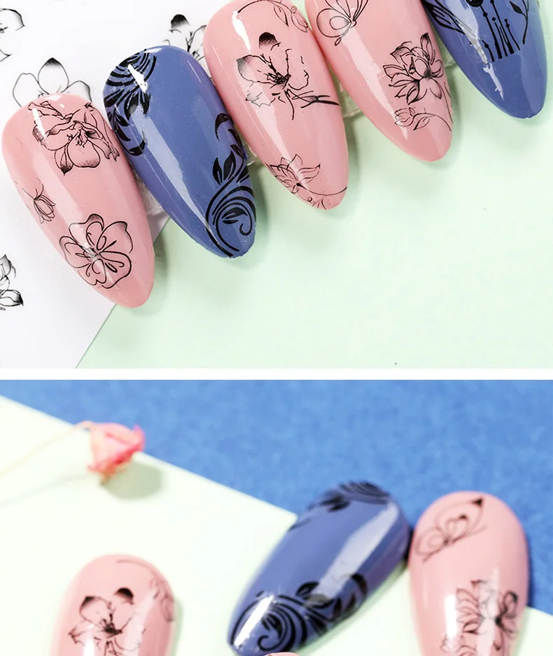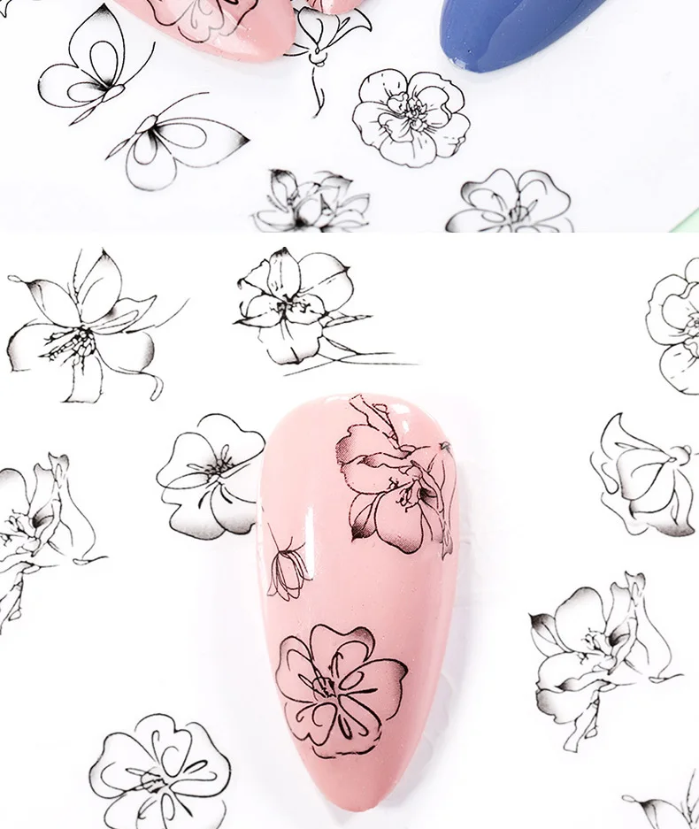 Sheet Black White 3D Nail Art Stickers Sliders Flowers Leaves Snake Mandala Leaf Geometry Adhesive Nail Decals Foil Design