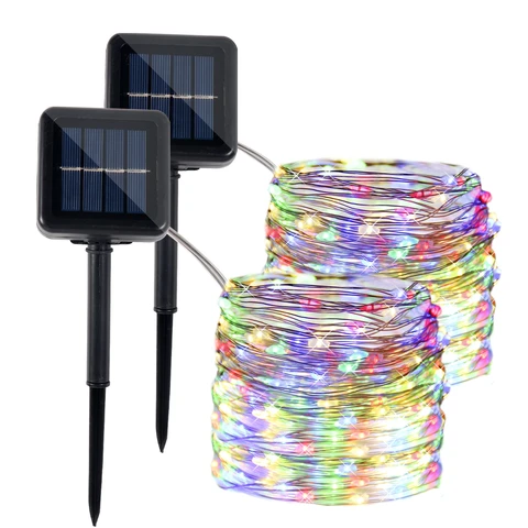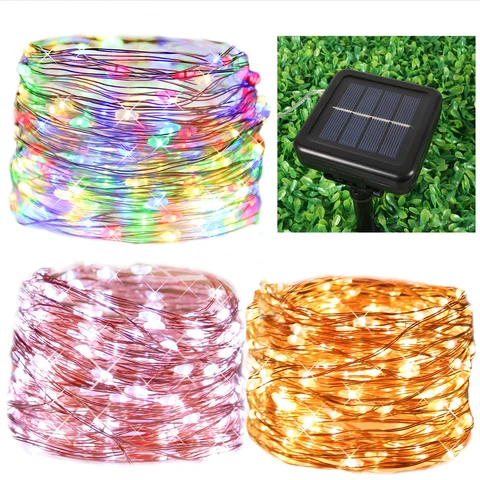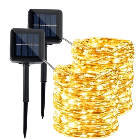 [Solar Powered Fairy String Lights] - The string light is with 98/66/33 feet moldable copper wire and 300/200/100 glowing Leds, with steady 360 degree viewing angle they illuminate in every direction. Ideal for decorating your gardens, patio, gate, yard, wedding, party etc.