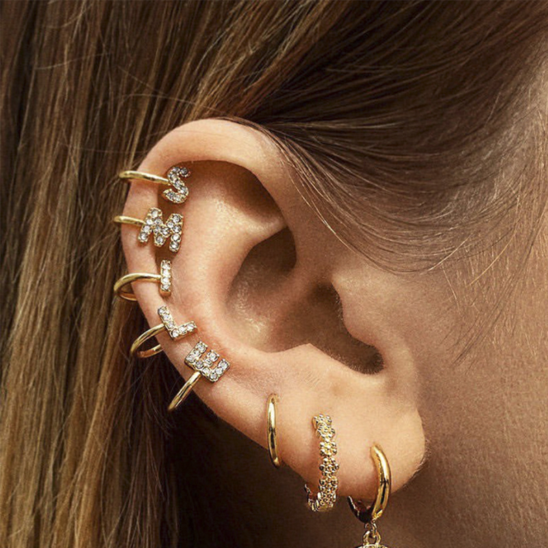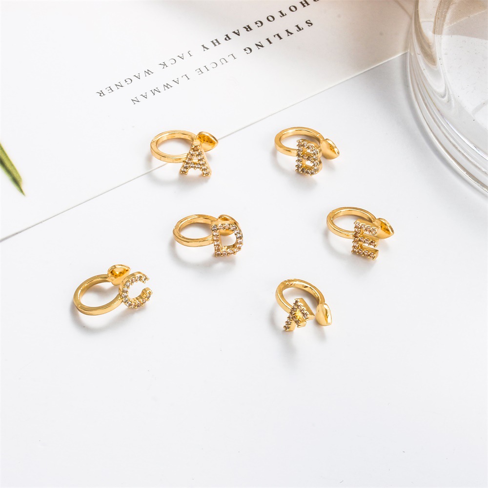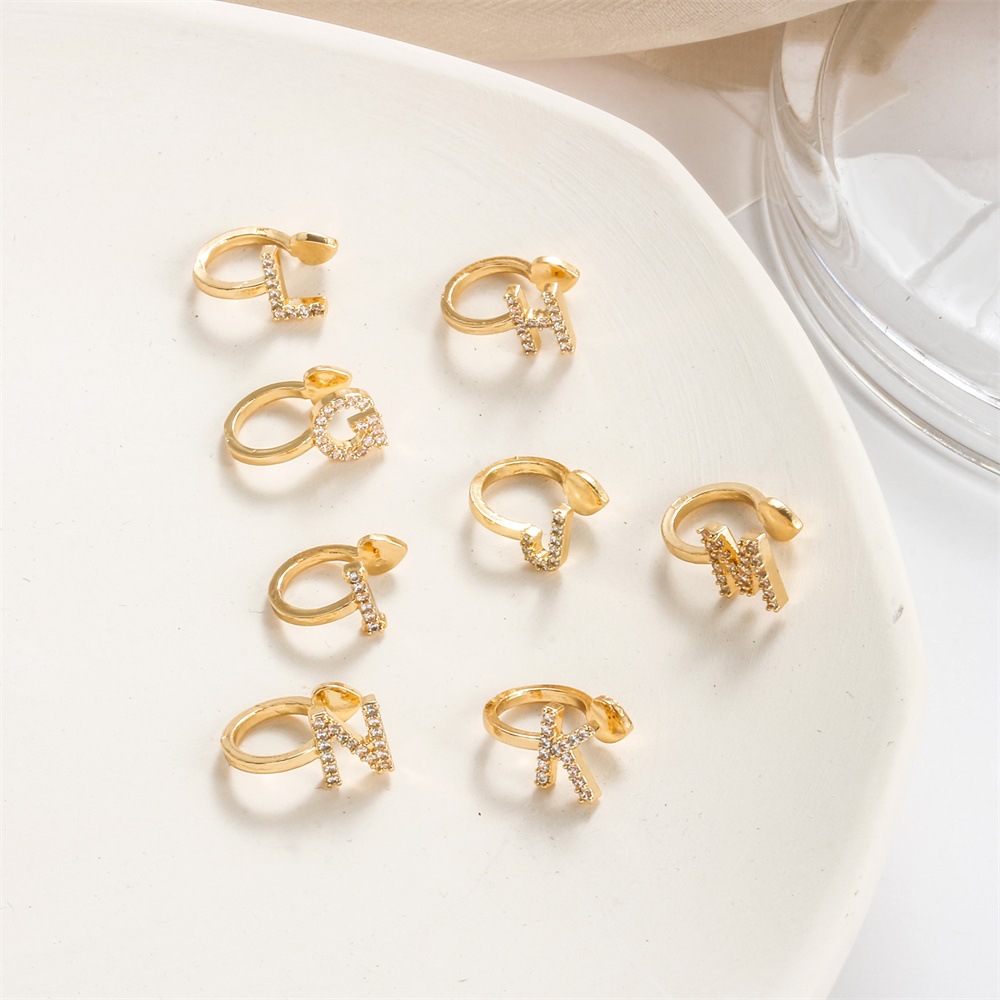 26 English Alphabet Ear Clips Simple Style Rhinestone No Piercing Earrings