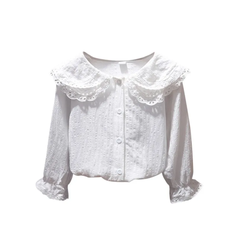 Style Lapel Blouse With Flared Sleeves Shirt Long-Sleeved Spring Autumn Cotton Lace Children Girl Tops Blouse Kids Clothes