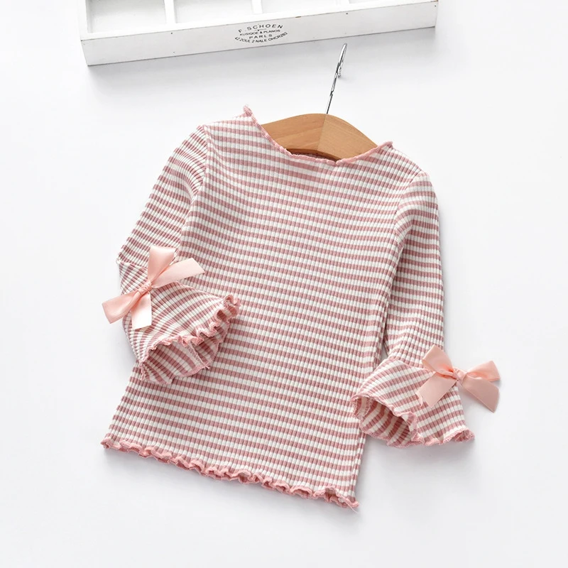 Simple and Fashion basic style,fall-winter long sleeve, cute ruffle design.Soft cotton cartoon T-shirts tops clothes.