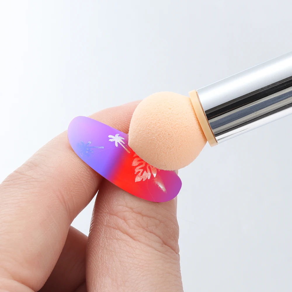 100% Brand New and High Quality Round and pointed shape, to meet a variety of blooming way. Perfect for both professional use and personal use! Color: Pink/ Purple/ Red/ Blue/ White/ Sapphire Material: Sponge Head+Plastic handle Styles: Replaceable Head, Round Pointed Head Design: Gradient Sponges Nail Art Brushes Pen Main Function: Nail blooming stippling. Double gradient. Blooming. Stippling. printing Package list: 1pc Nail Art Brush+2pcs Sponges