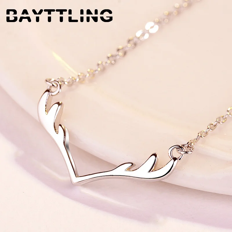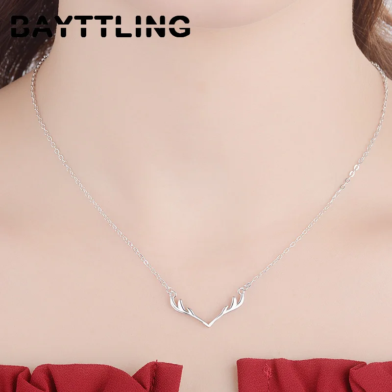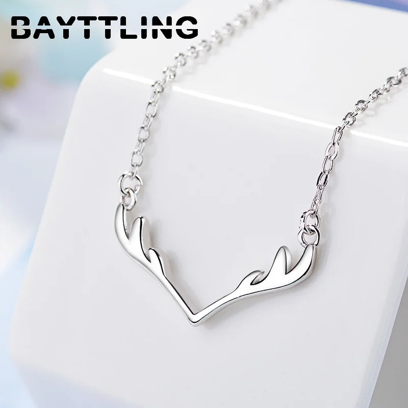 BAYTTLING Silver Color Simple Fashion Antler Pendant Necklace For Woman Jewelry Necklace Party Gift