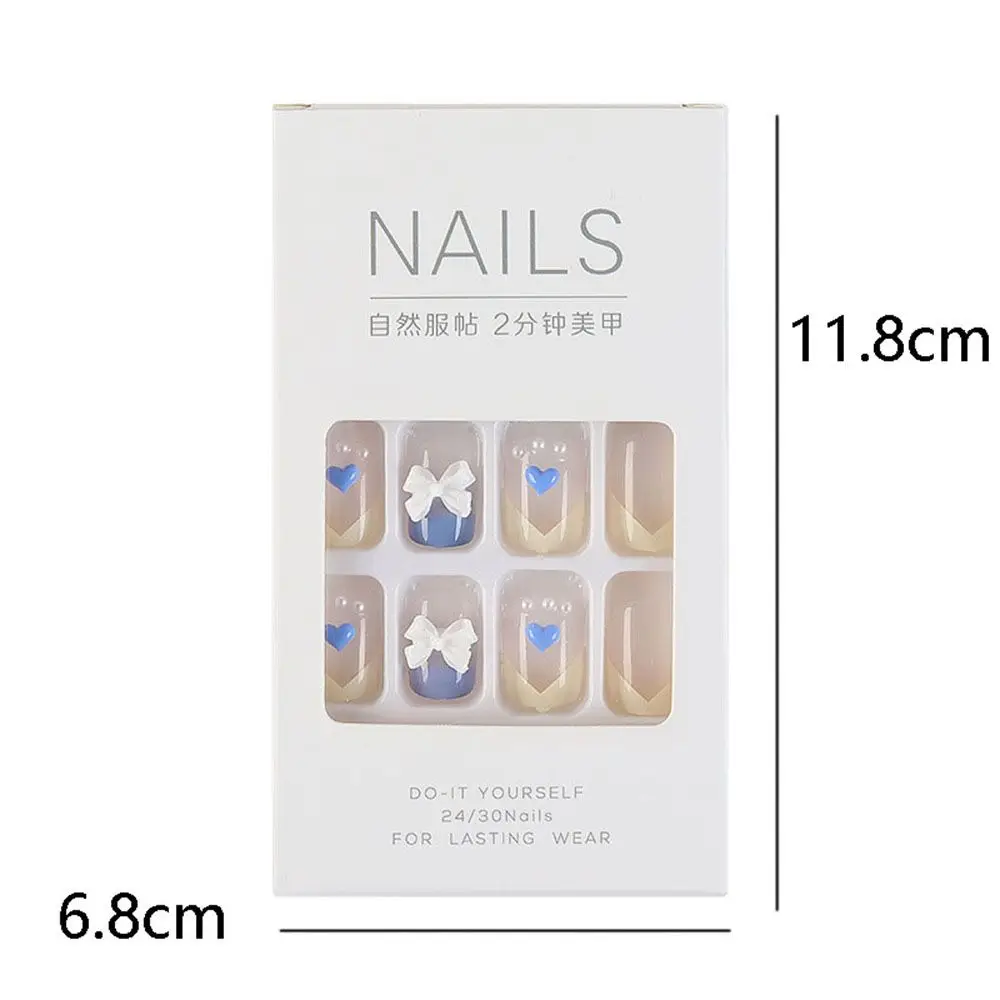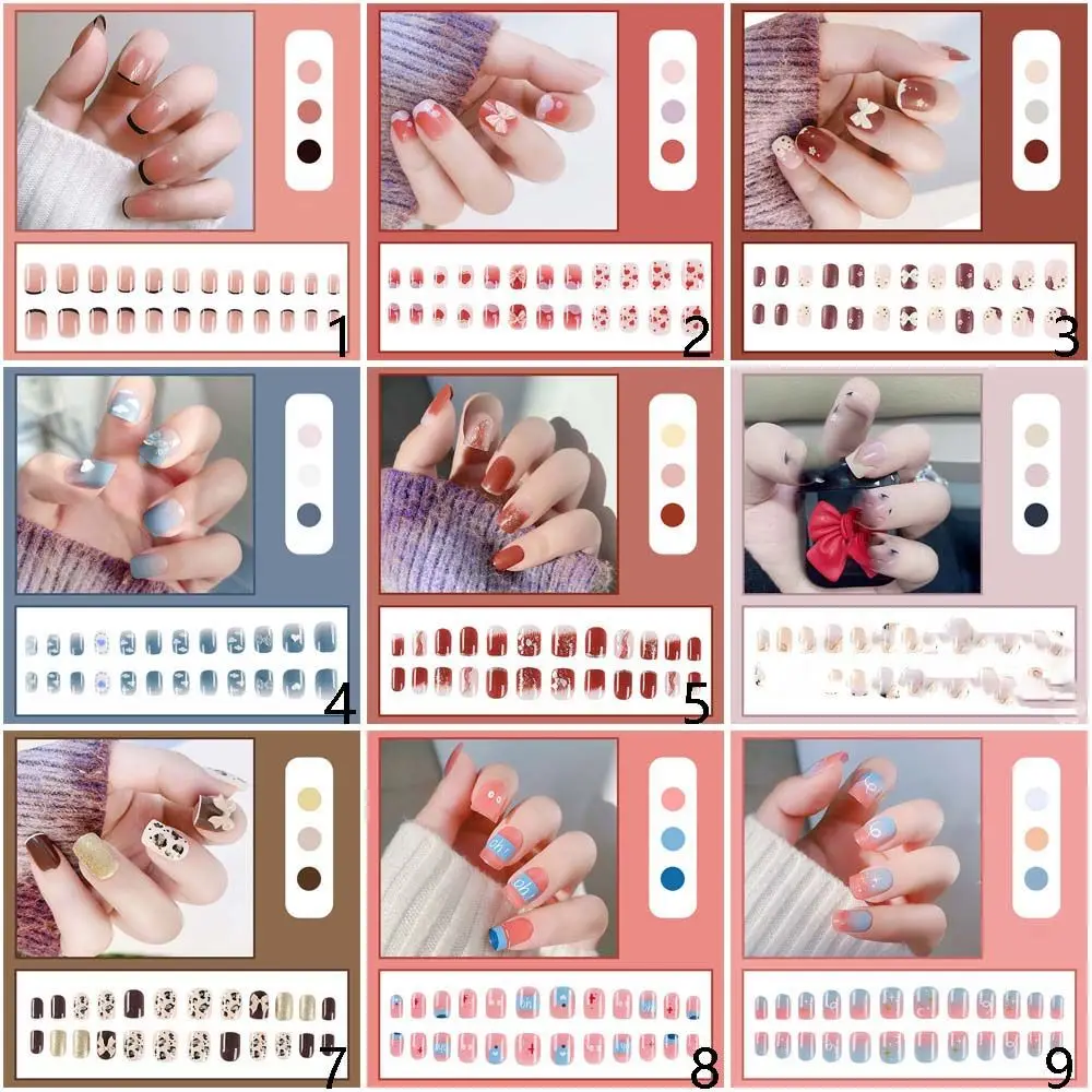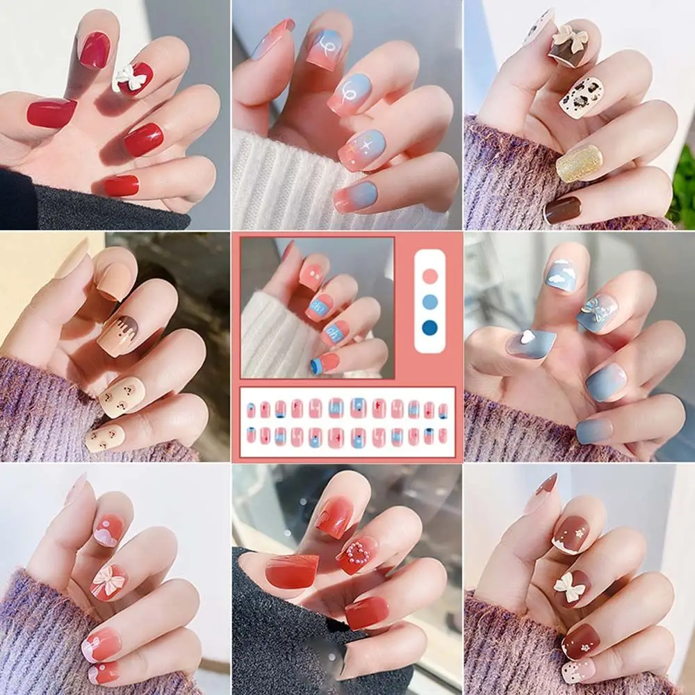 on False with Designs Set Bowknot Cartoon Animal Decal Fake Nails Art Heart Point Full Cover Artificial Short Nail Tips